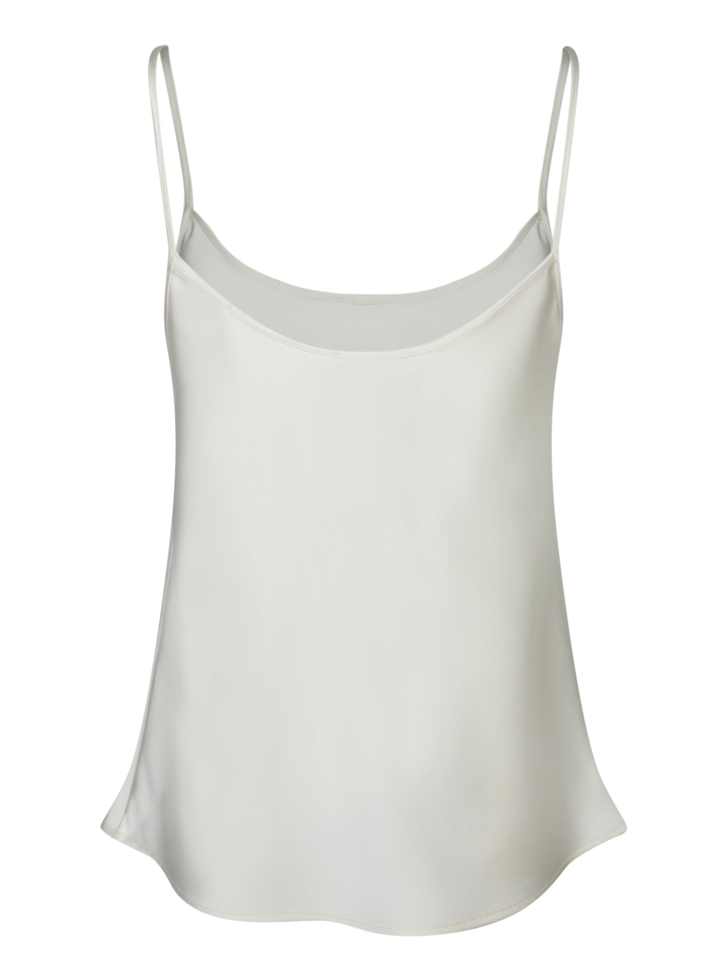 Elegant and refined, this Blanca Vita tank top is crafted from luxurious white satin, adding a touch of class to any outfit. It features a soft drape and thin straps for a feminine silhouette.