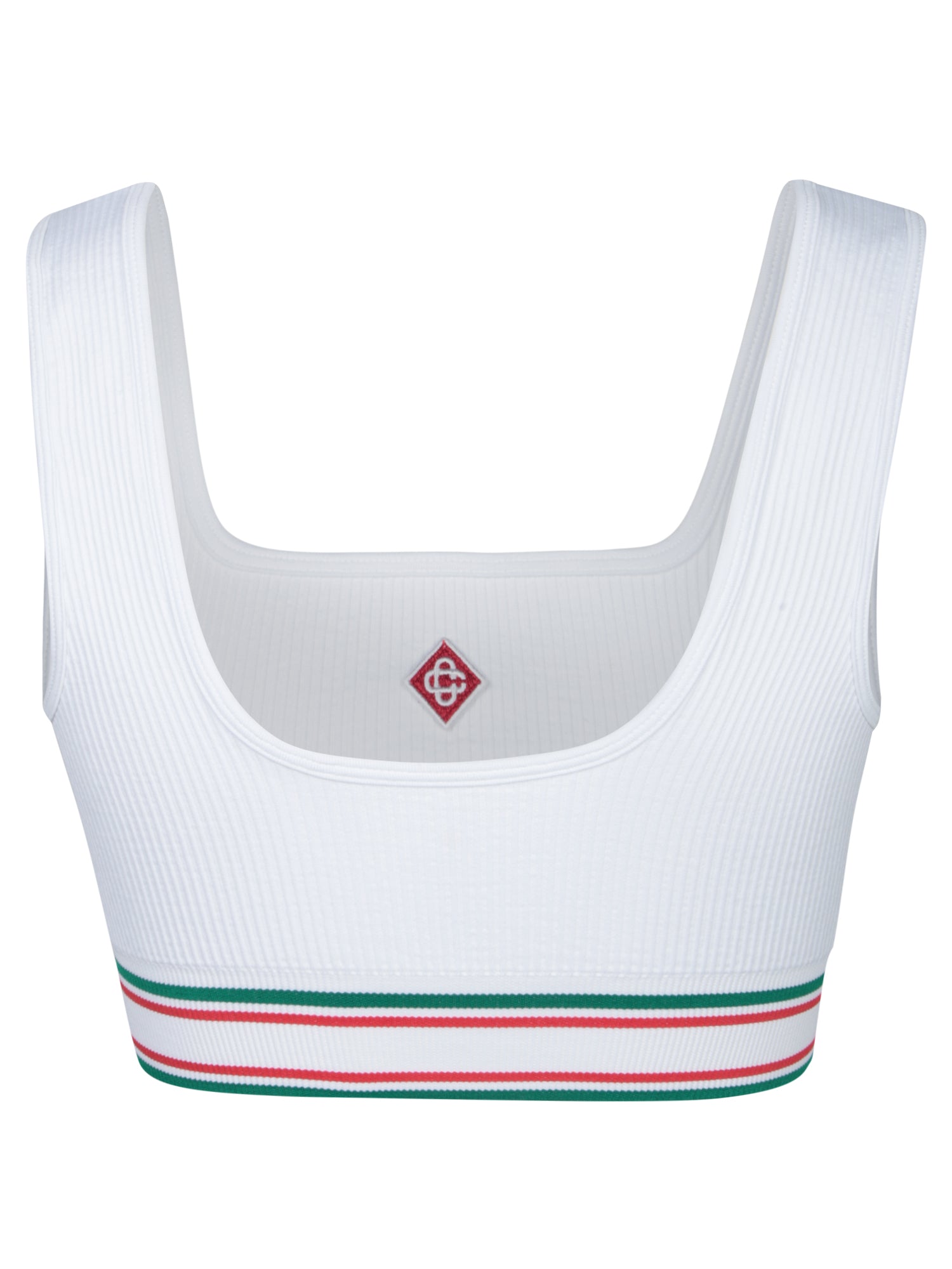 Seamless top. Decorated elastic band. Ribbed fabric.