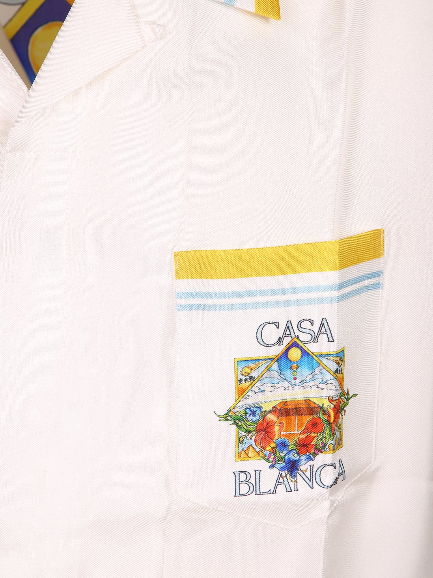 Premium silk. Short sleeves. Striped collar. Pocket with logo embroidery.