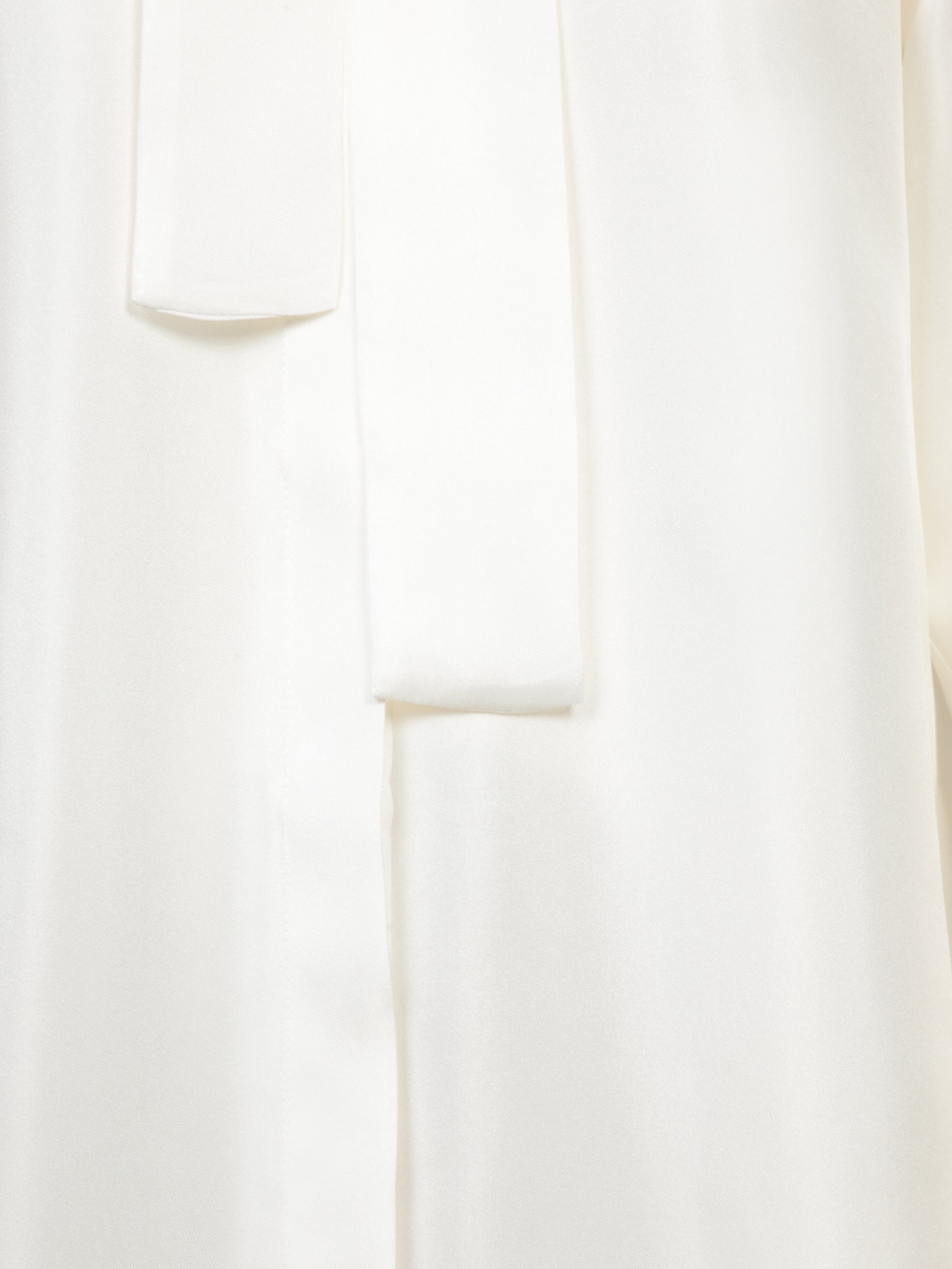 Silk twill shirt with neck bow, long sleeves, and concealed button closure.