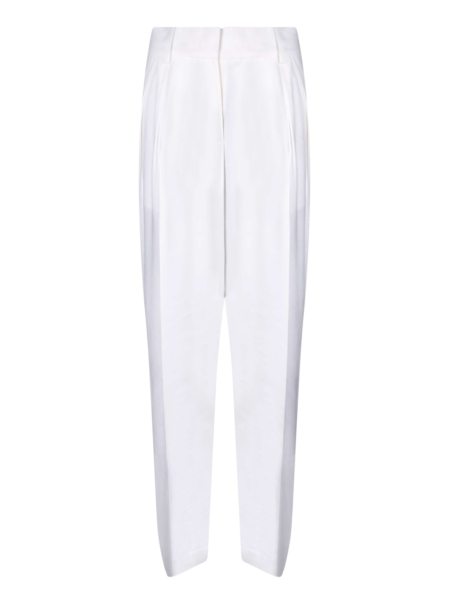 High-waisted trousers in viscose twill. Hidden front zip closure. Straight cut.