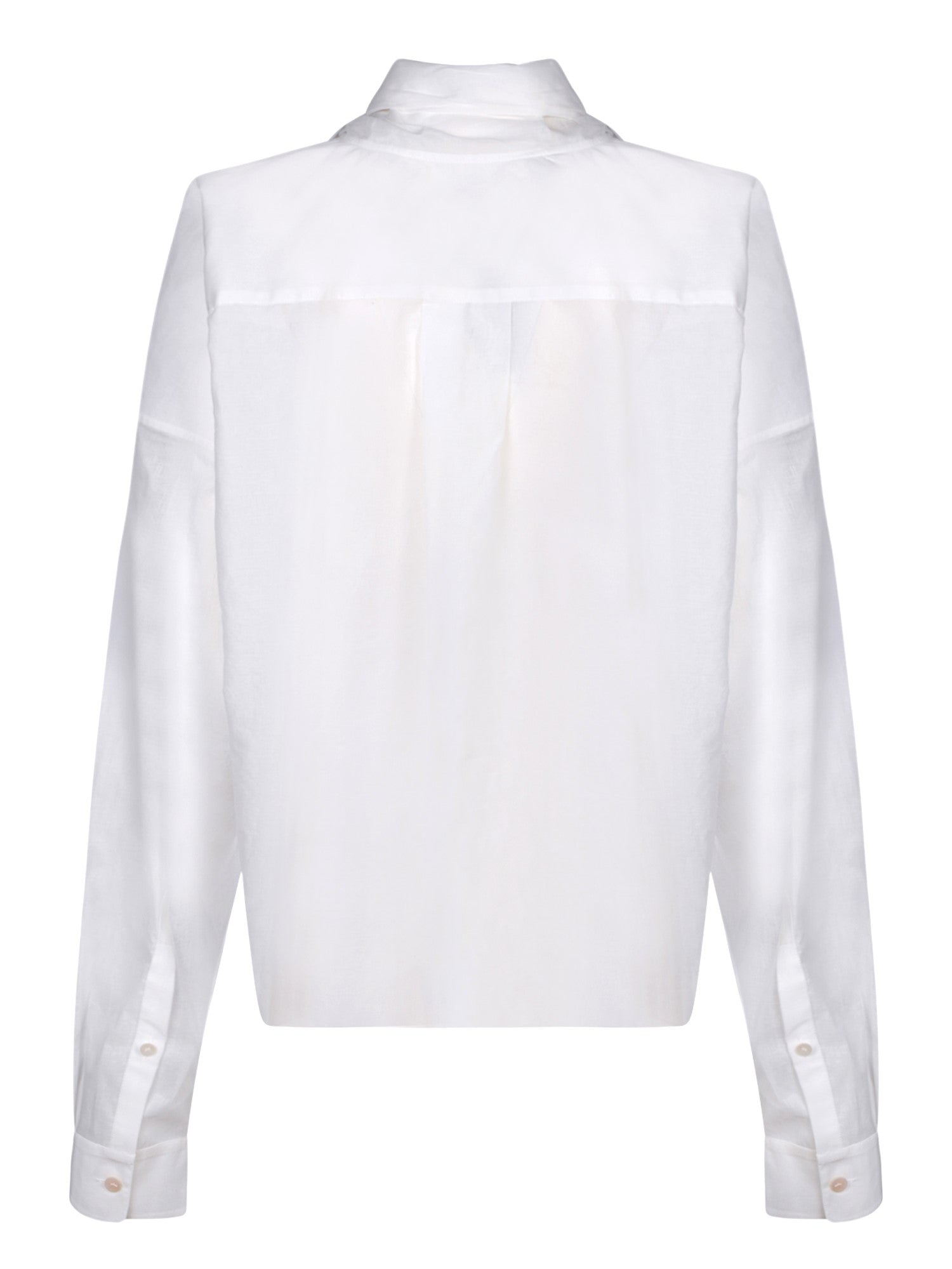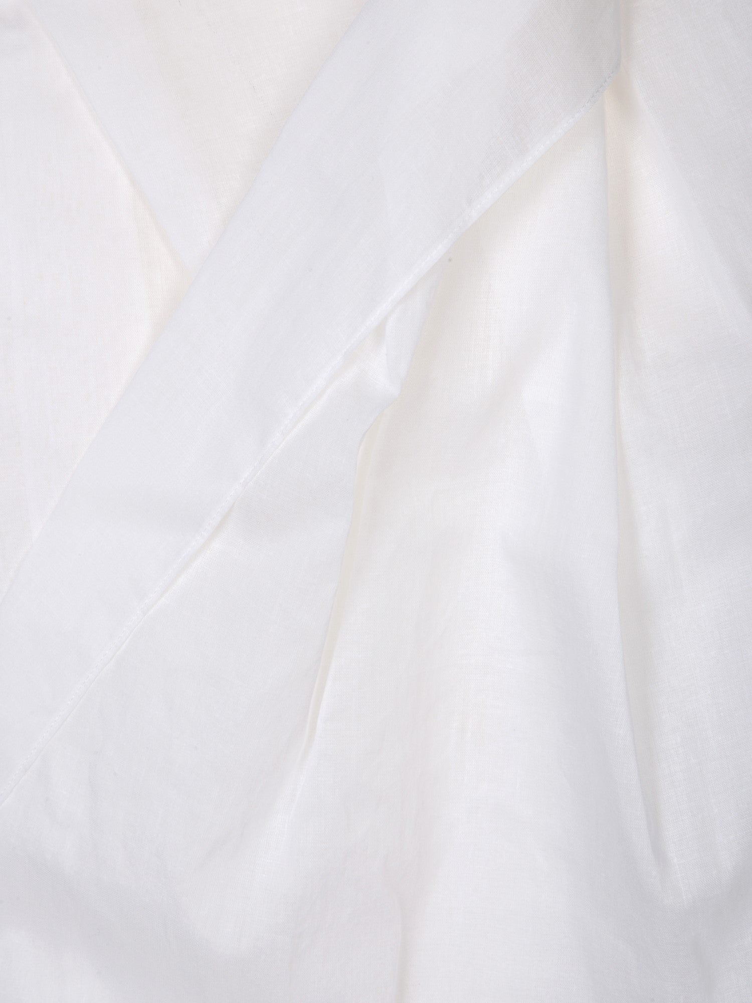 Lightweight fabric wrap shirt. Long sleeves with cuffs. Asymmetric front fastening.