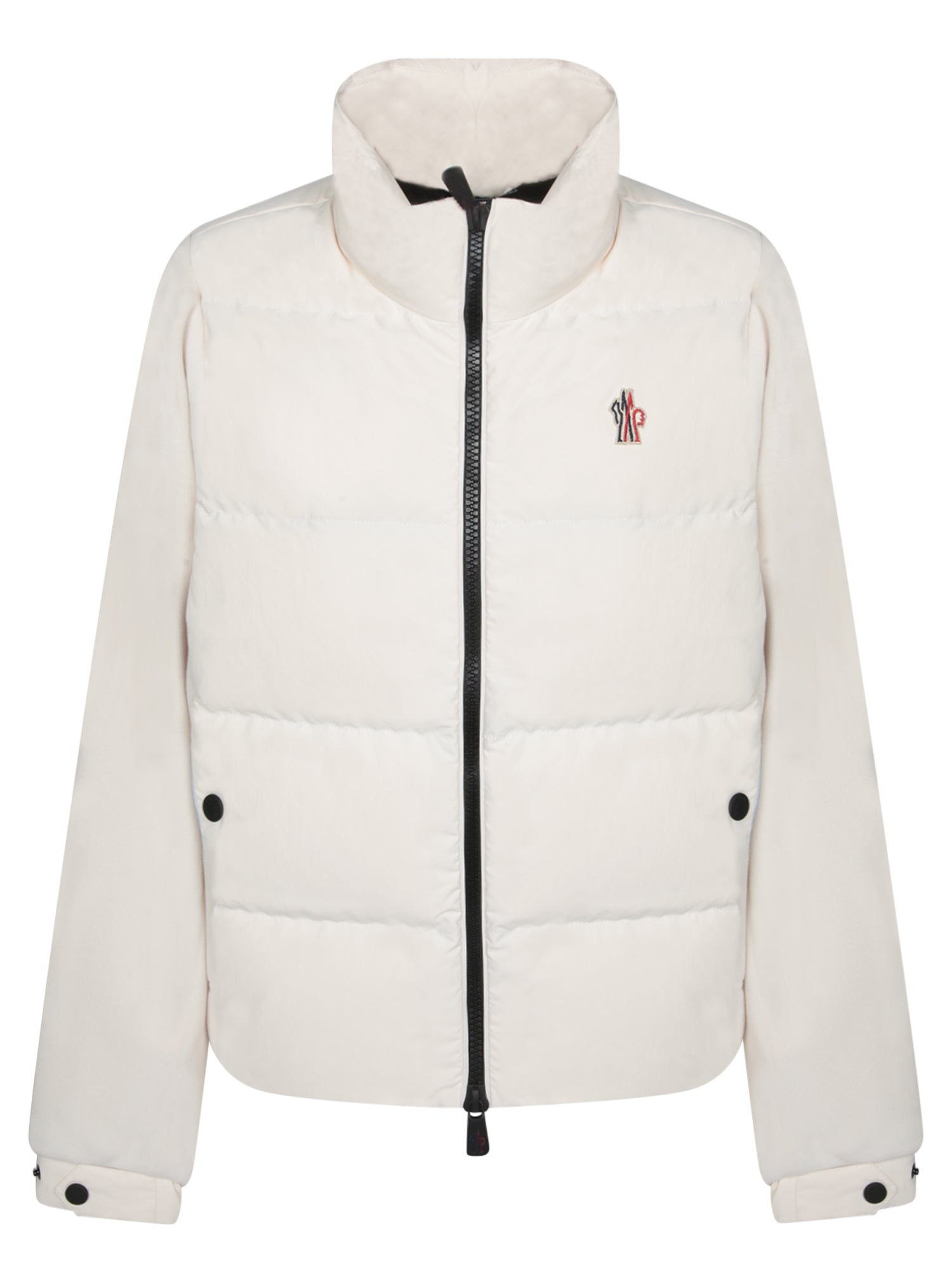 Padded cardigan in technical fabric. Front zip closure. High collar.