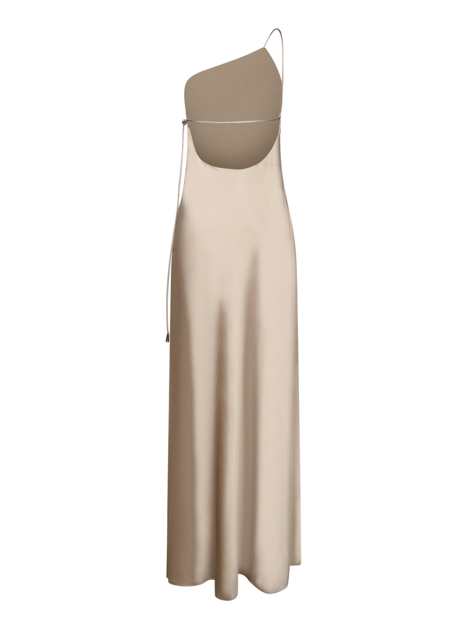 Elegance meets sophistication in this long silk dress in dark sand by Danamè. Featuring adjustable thin straps for a tailored fit, it boasts a seductive high side slit adding a touch of boldness.