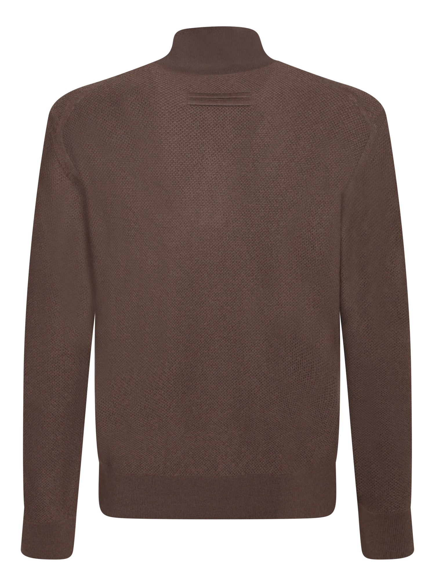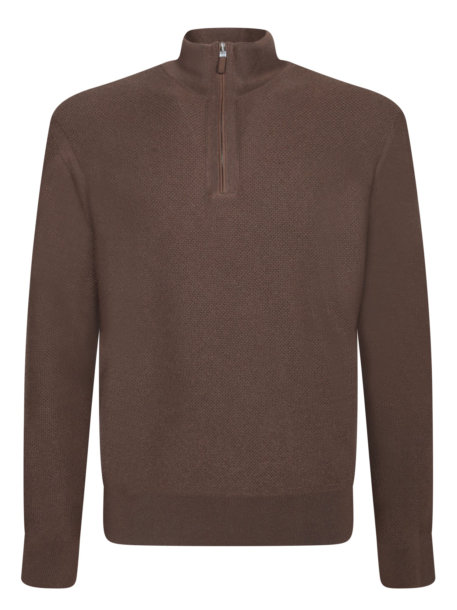 Cashmere sweater with partial zip. Brown color. High collar.