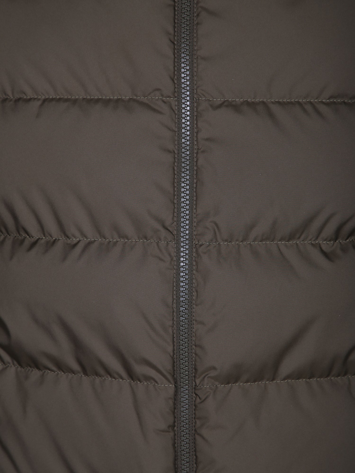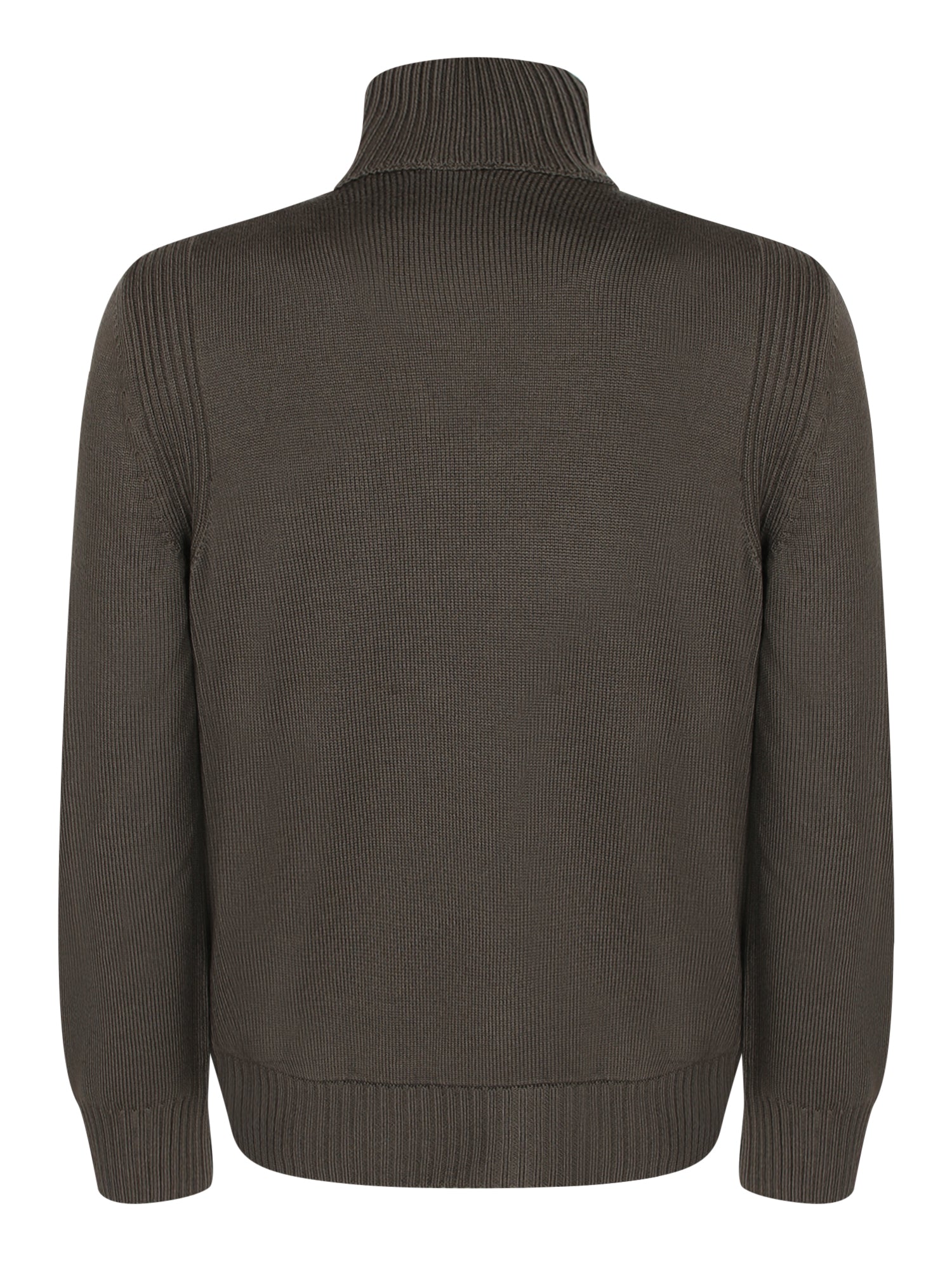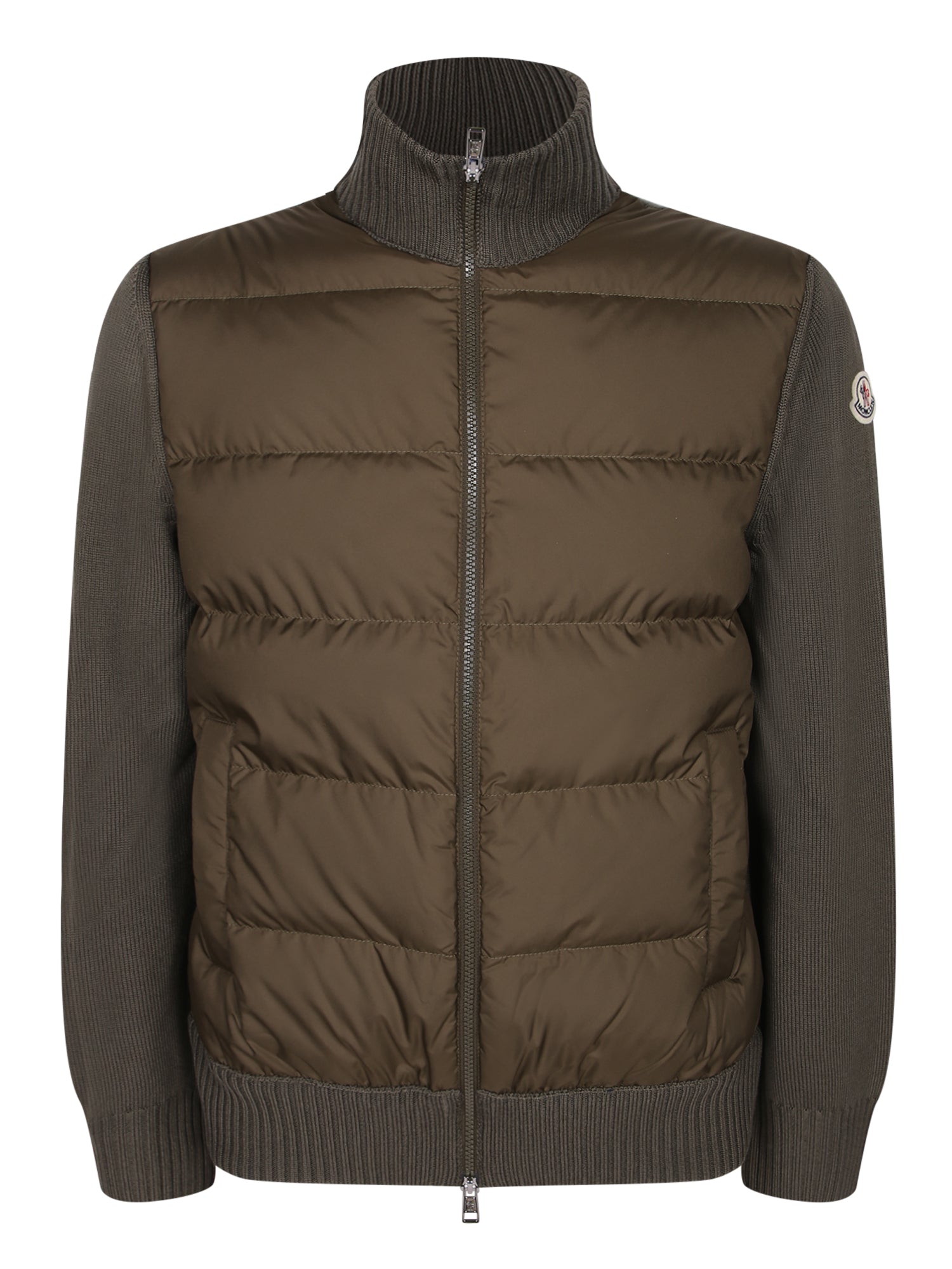 Quilted fabric cardigan. Full front zipper. High knit collar.