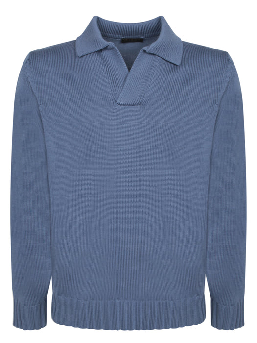 Blue Merino Wool Polo Shirt