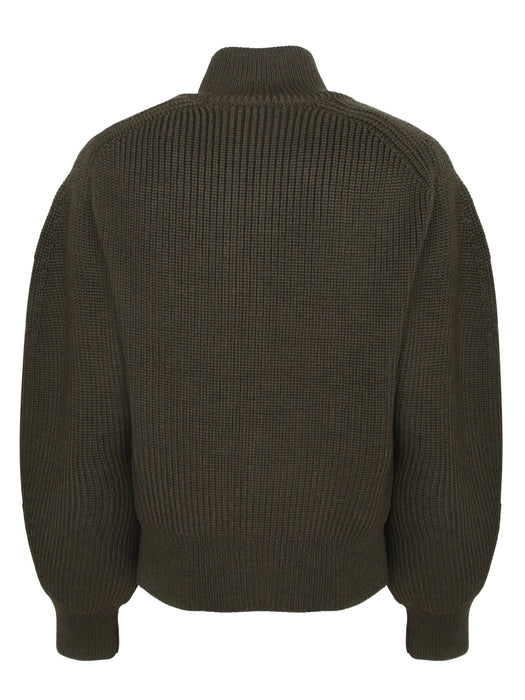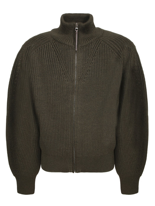 Zippered Merino Cardigan in Khaki