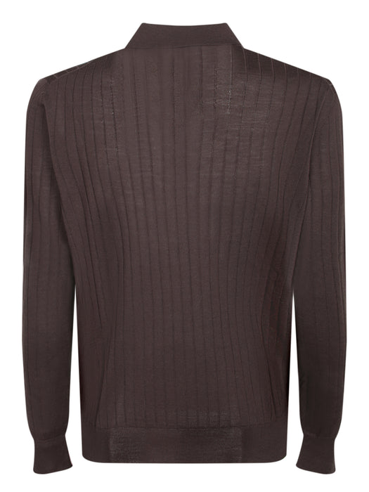 Ribbed Merino Polo Brown