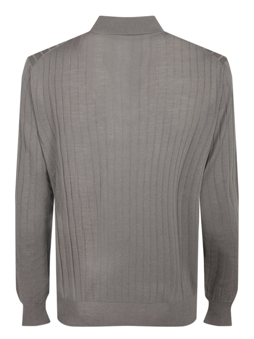 Ribbed Knit Polo in Dove Grey