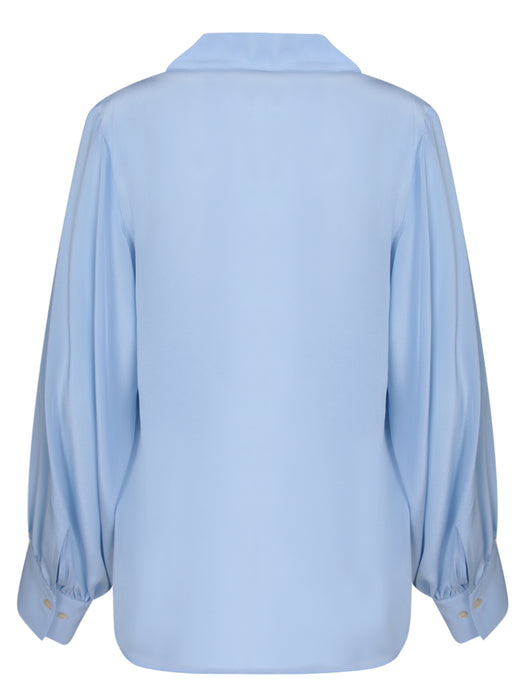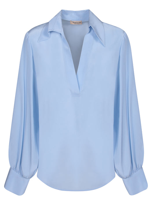 Blanca Vita Silk Blend V-Neck Blouse in Light Blue