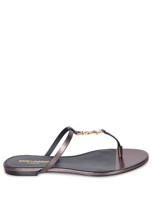 Cassandra lamé/black thong sandals