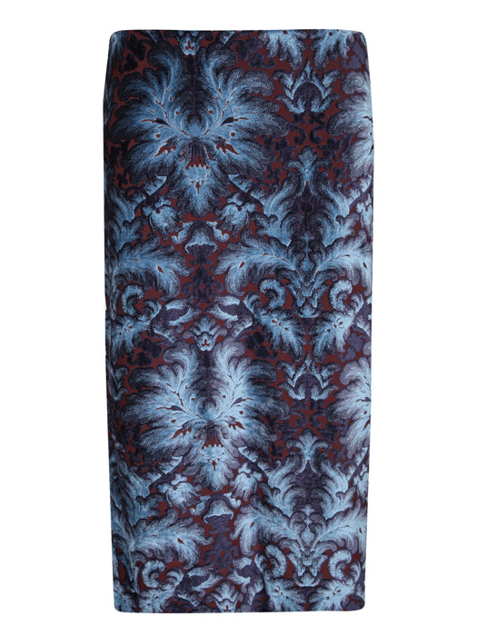 Blue Black Velvet Paisley Midi Skirt