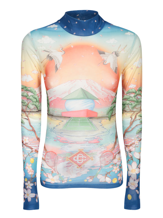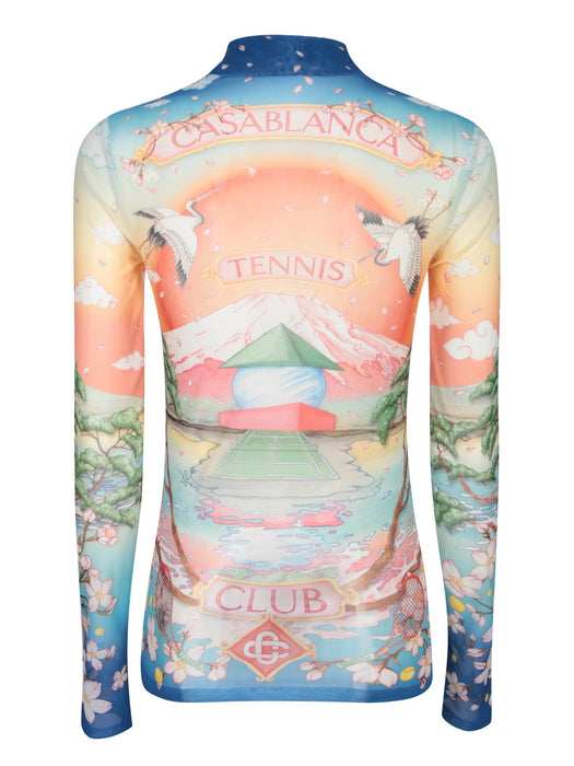 Mesh Top with Multicolor Tennis Club Print