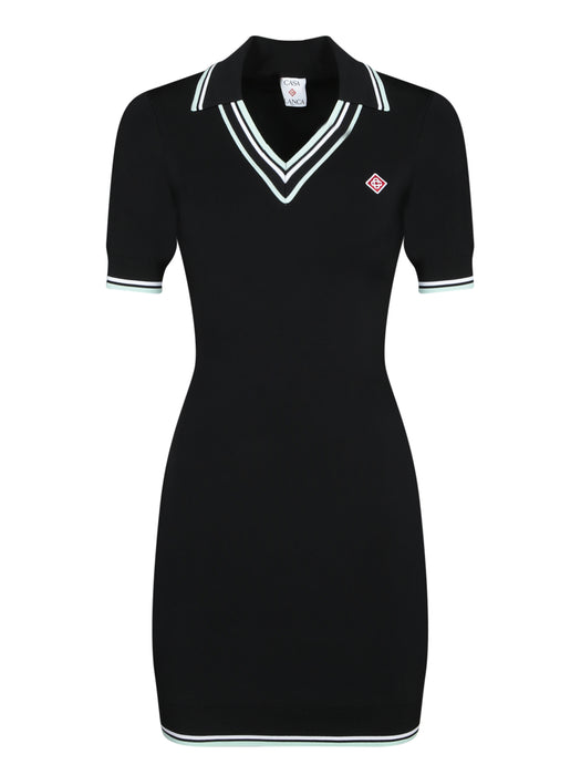 Black Viscose Mini Polo Dress