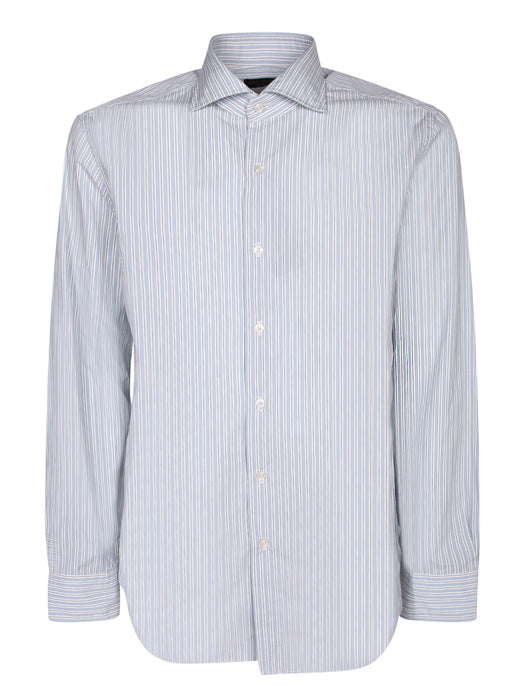 Light Blue Striped Cotton Twill Shirt