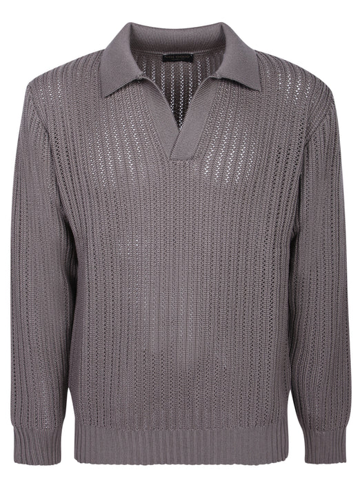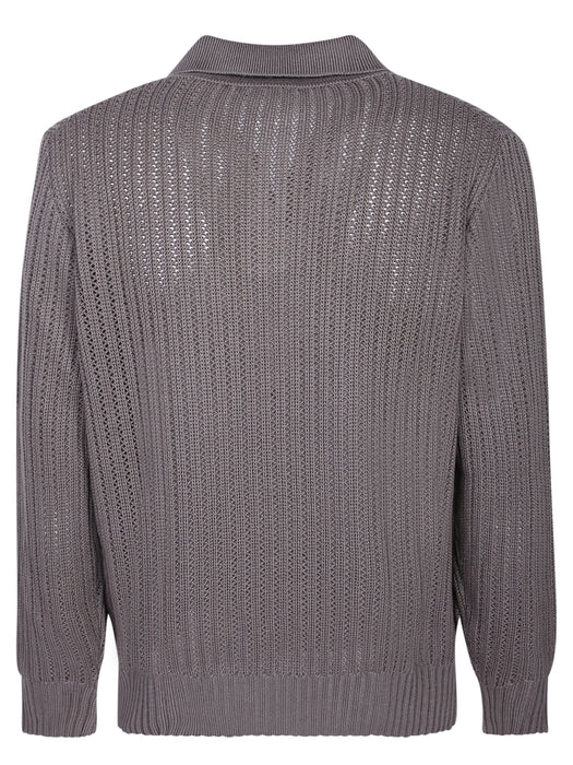 Dell'Oglio Open Knit Polo in Dove Grey