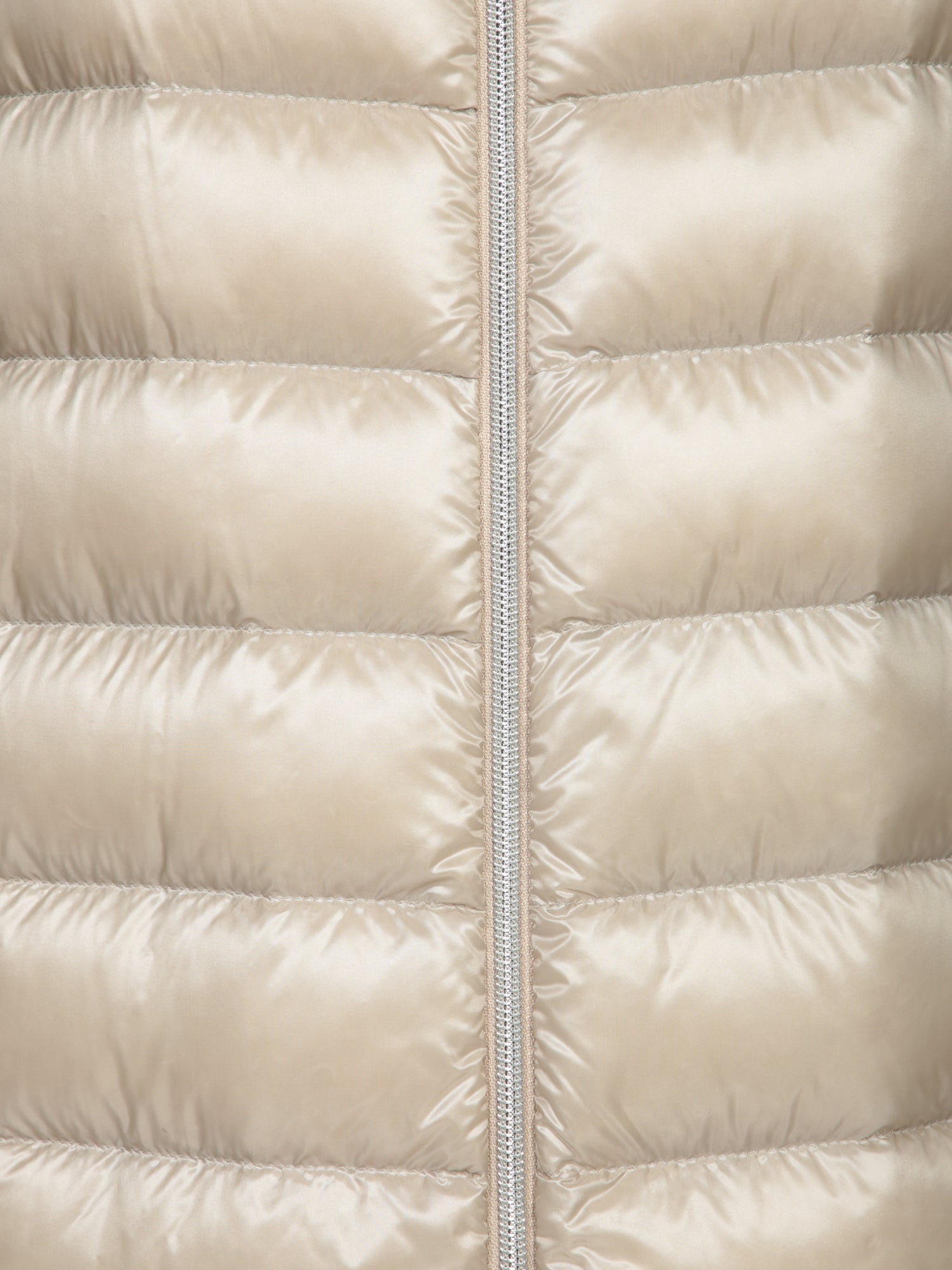 Padded jacket with hood, central zip closure, side pockets. Water-resistant material.