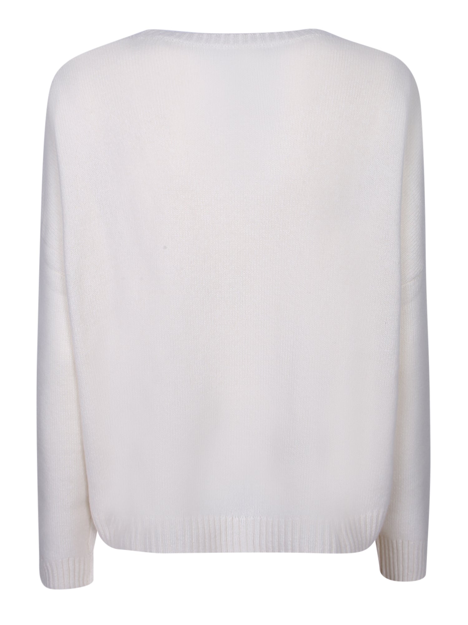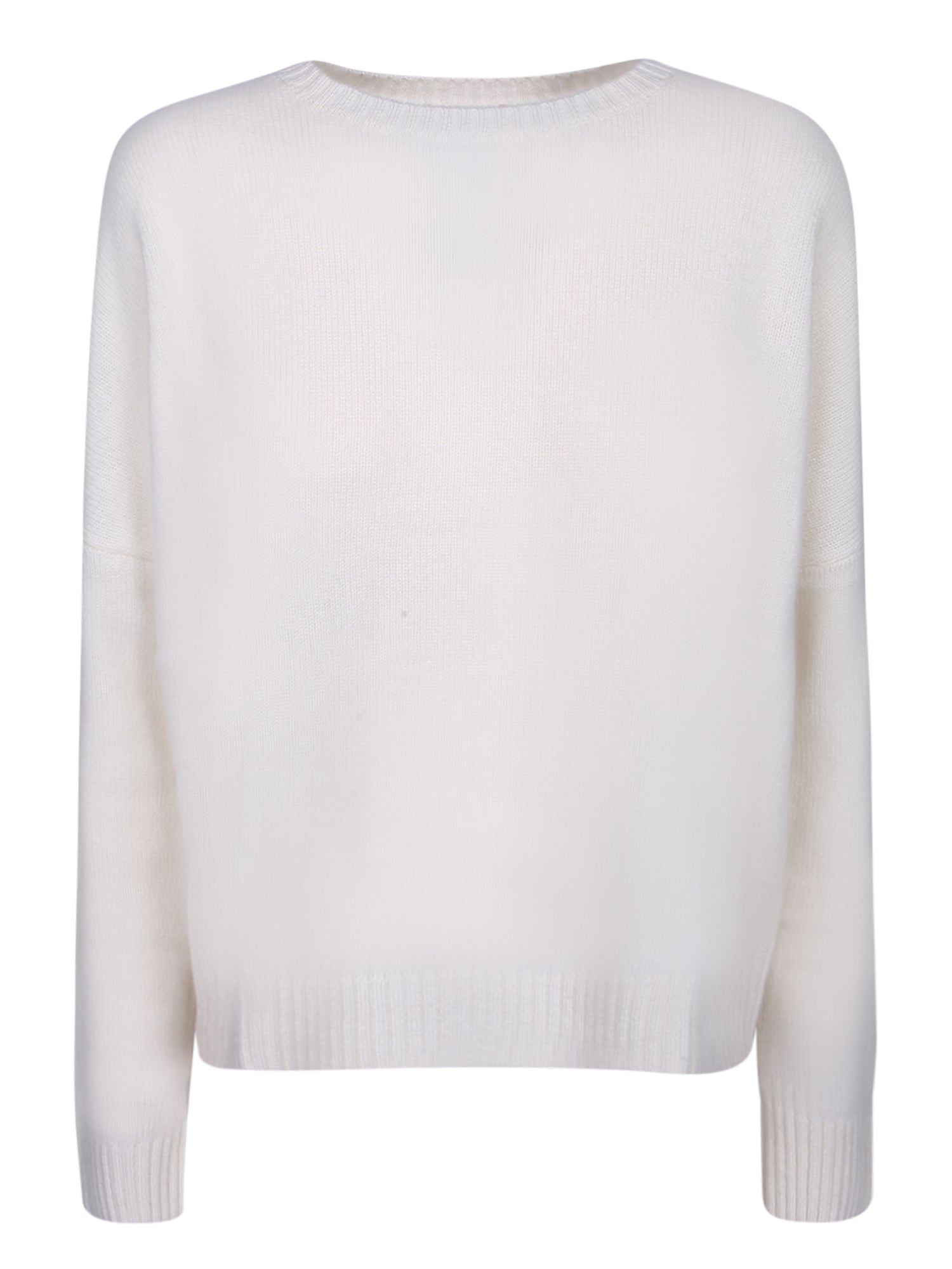 Long-sleeve sweater in fine knit. Crew neck. Solid white color.