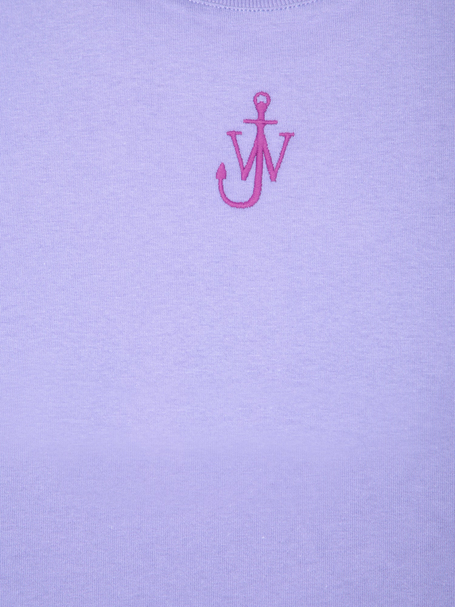 This lilac T-shirt by J.W Anderson is distinguished by its distinctive feature: a contrasting embroidered anchor on the chest that adds a nautical touch to its clean and minimalist design.