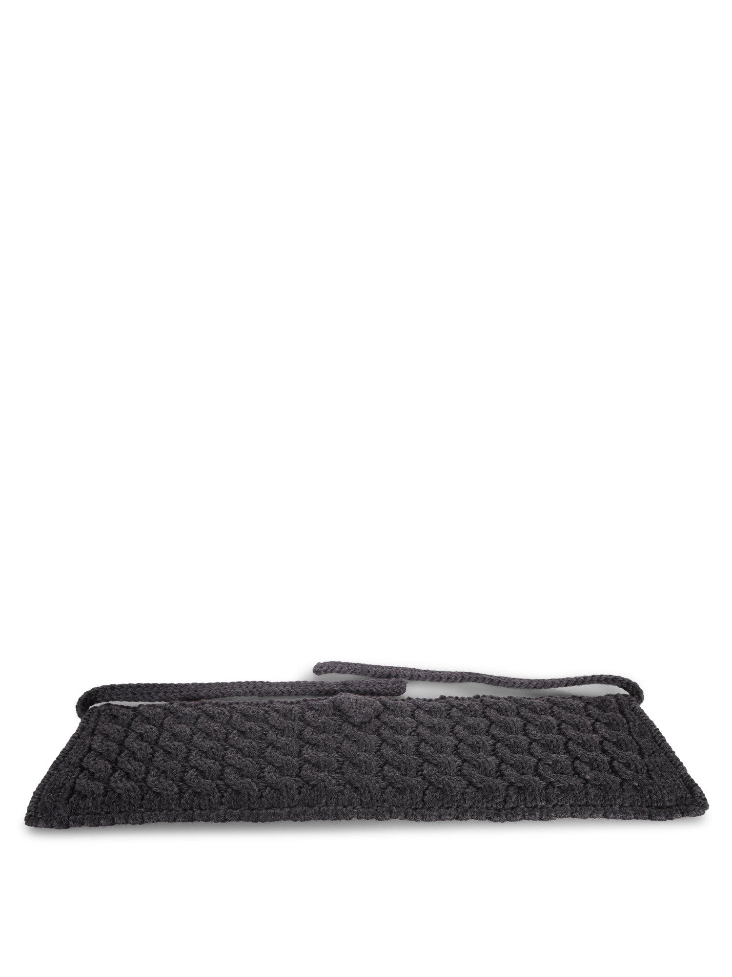 Cable knit wool scarf in slate gray. Long, enveloping design.