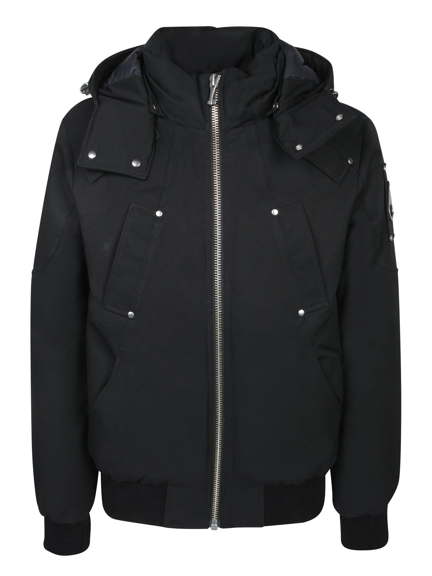 Jacket with hood, front zip closure and snap buttons, multiple pockets.