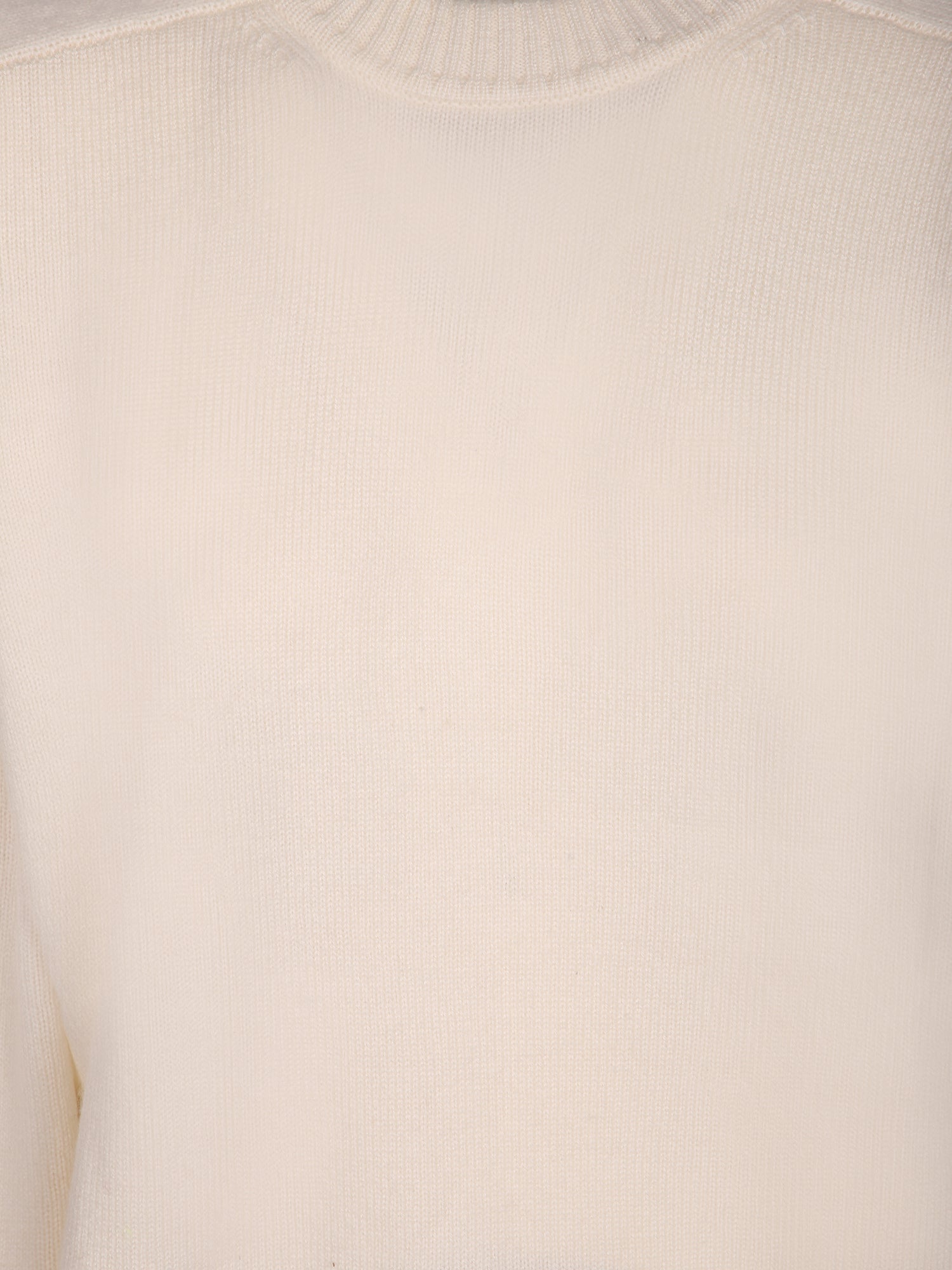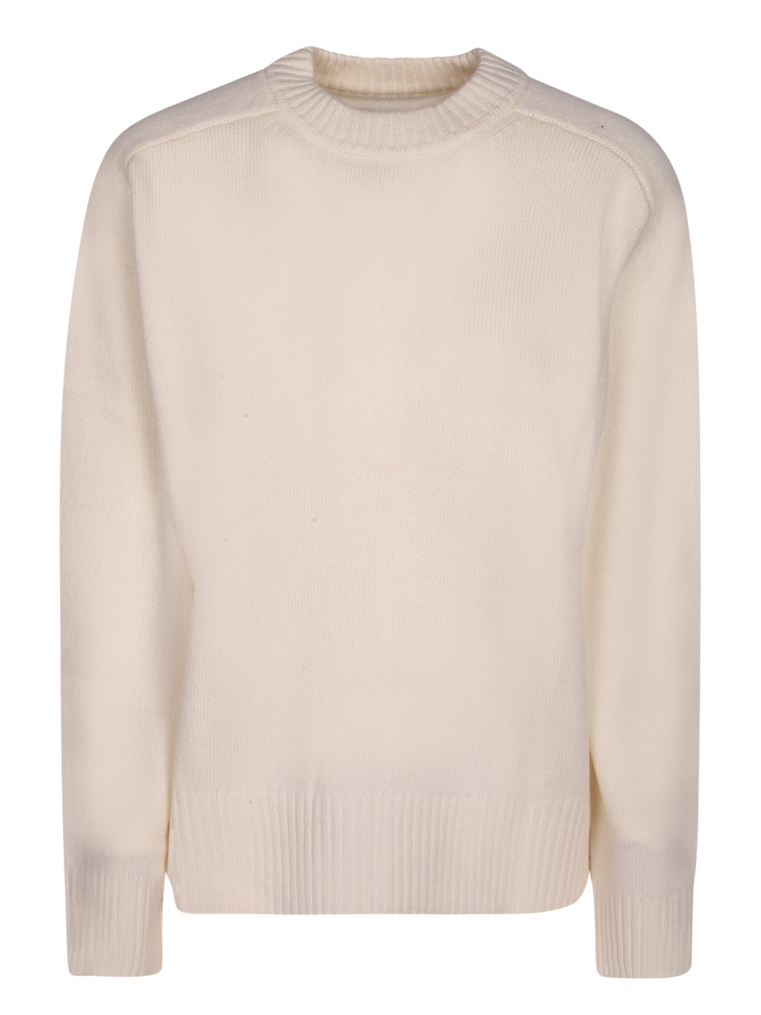 Crew neck. Long sleeves. Ribbed neckline, cuffs, and hem.