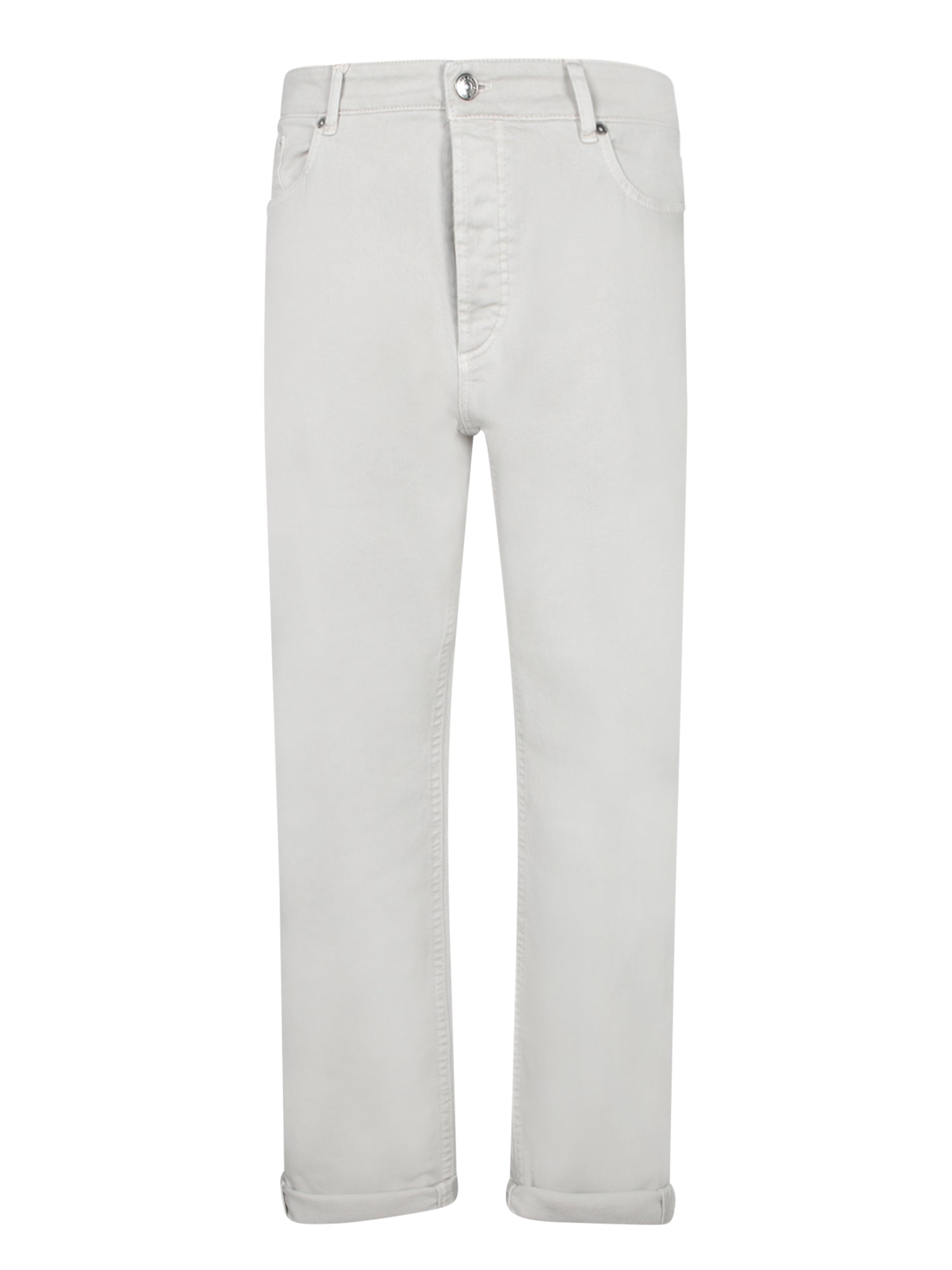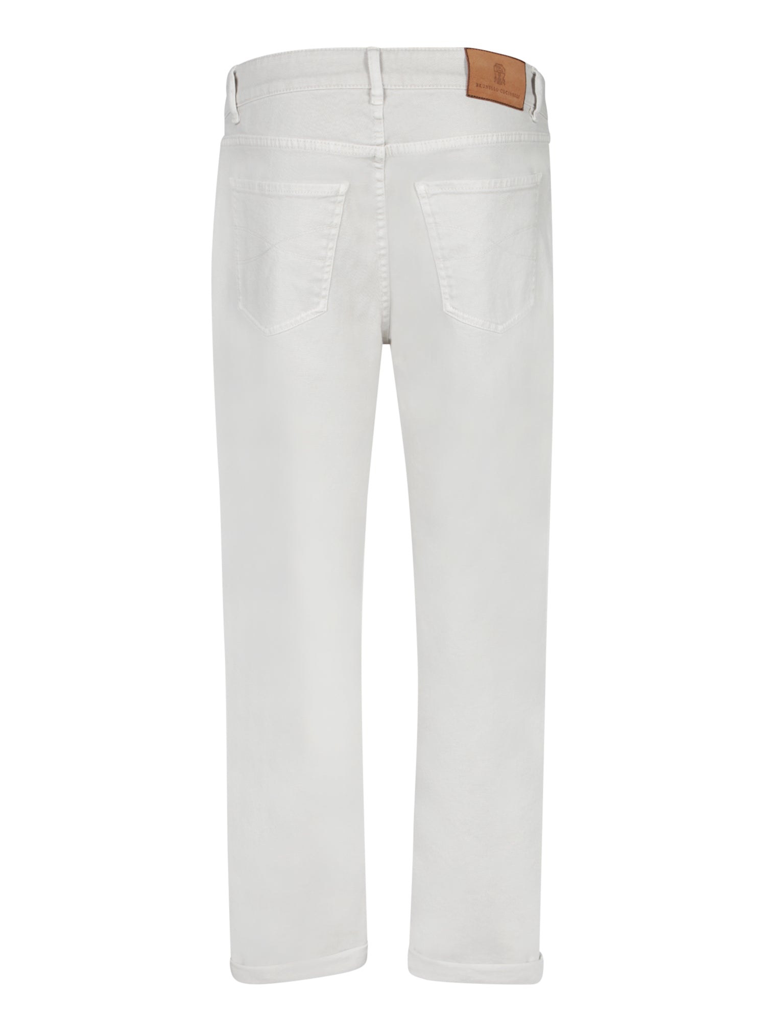 High-quality cotton bull denim trousers in a delicate medium beige color. Ideal for a casual yet sophisticated look, these trousers represent essential contemporary elegance.