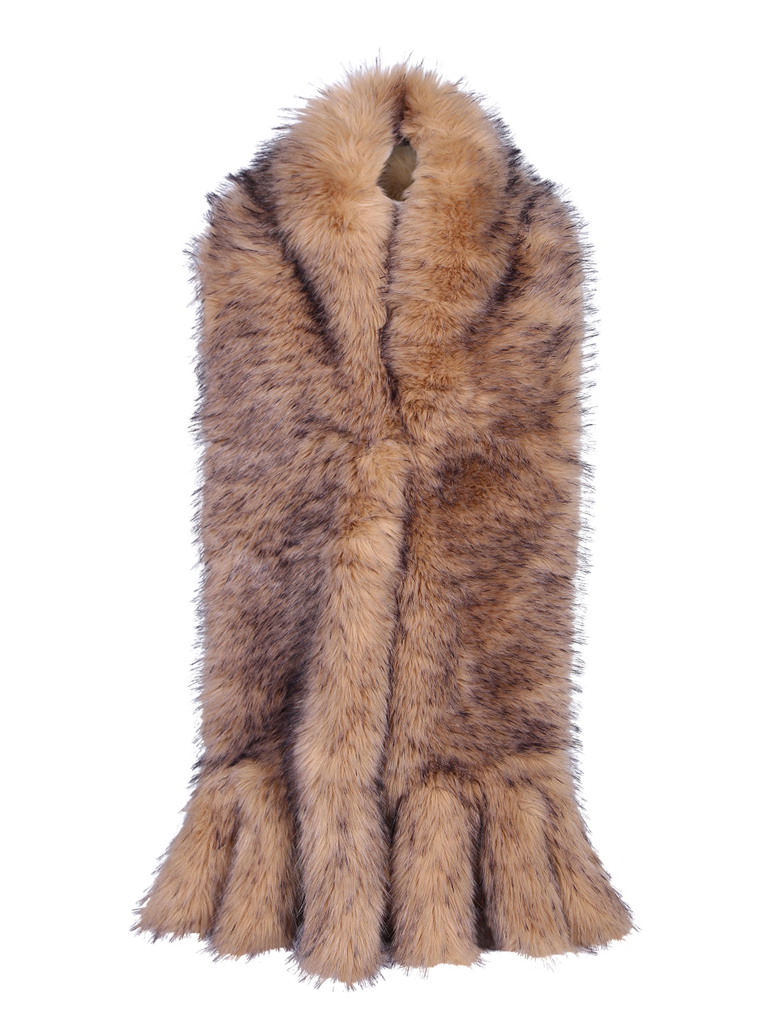Faux fur scarf. Wide and fluffy design. Beige color.