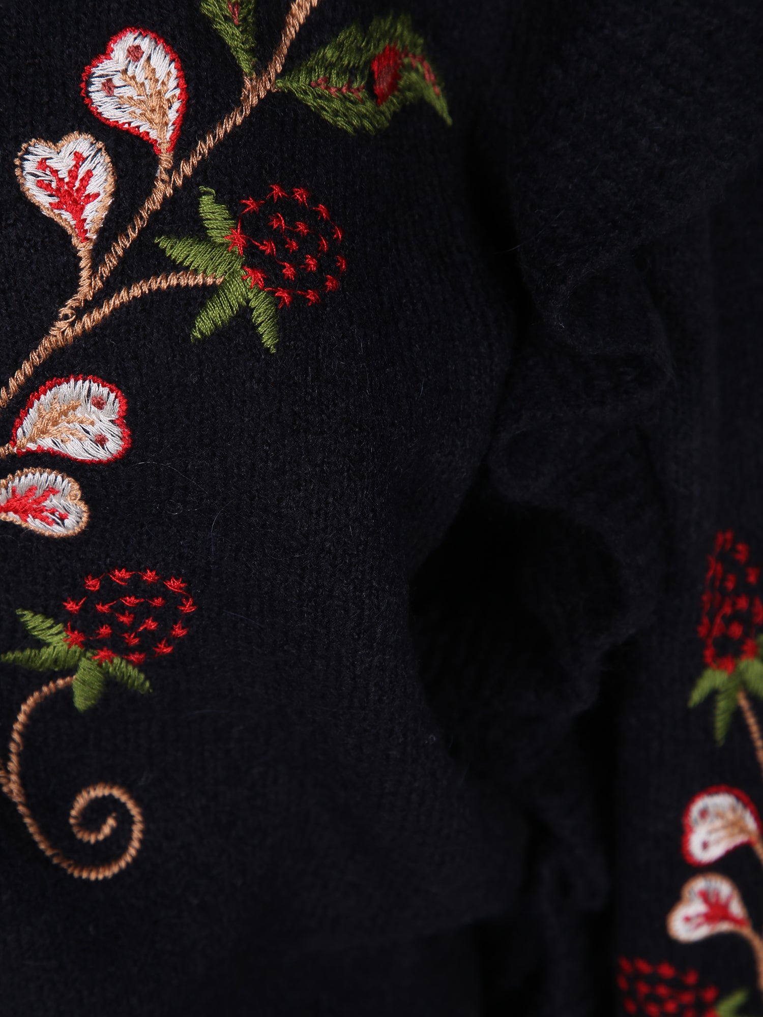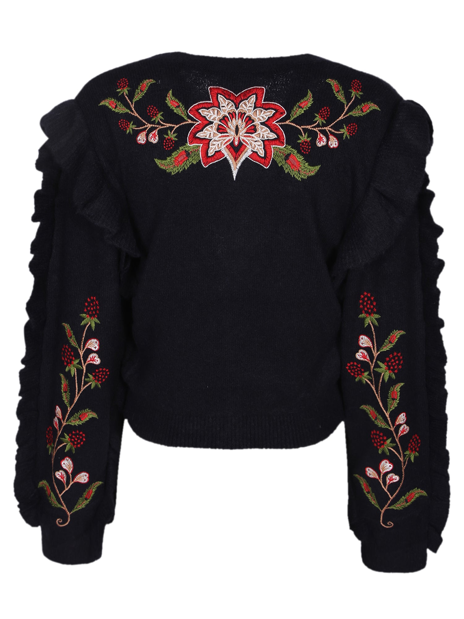 Berry Embroidered Knit Cardigan Black