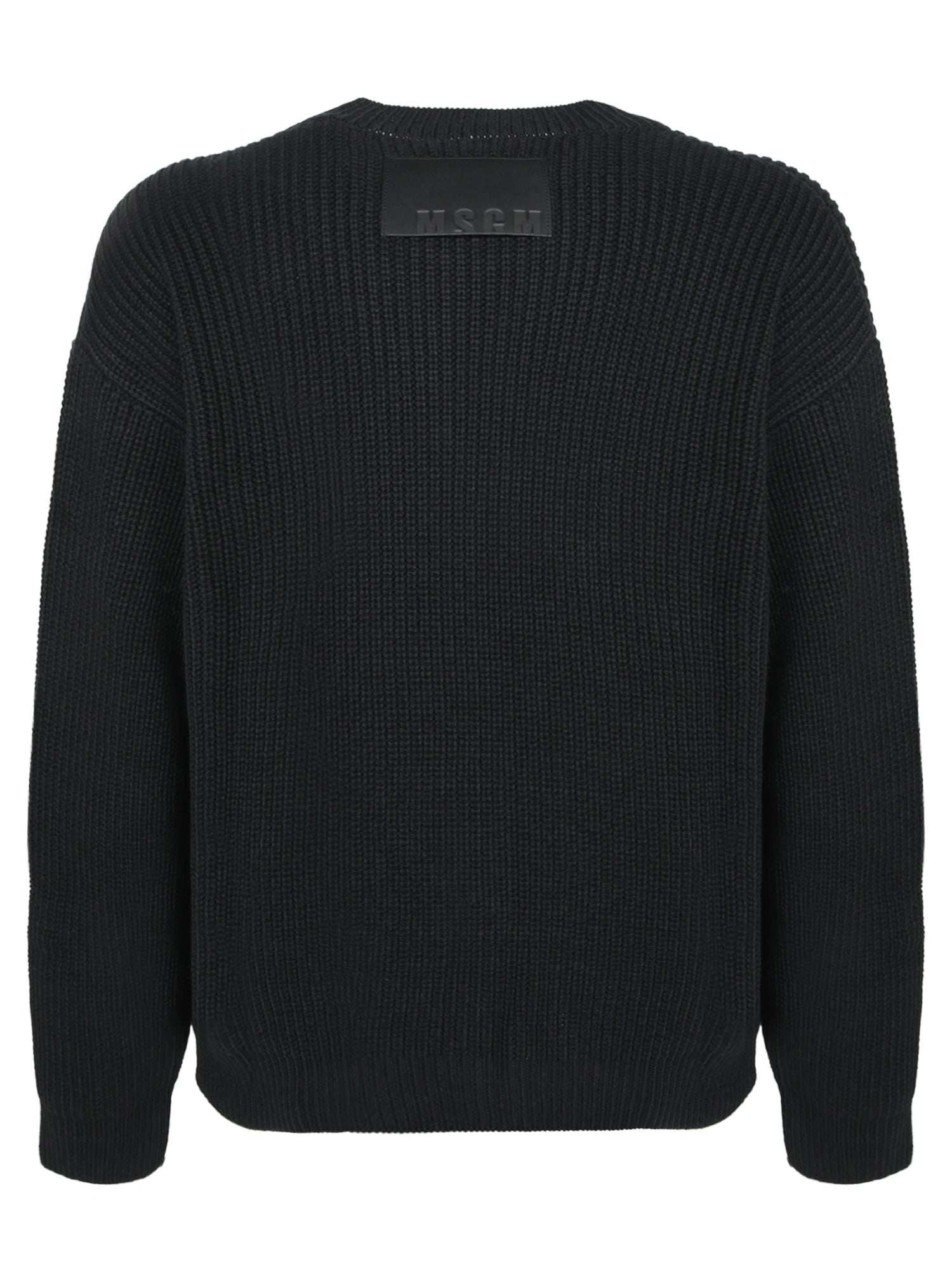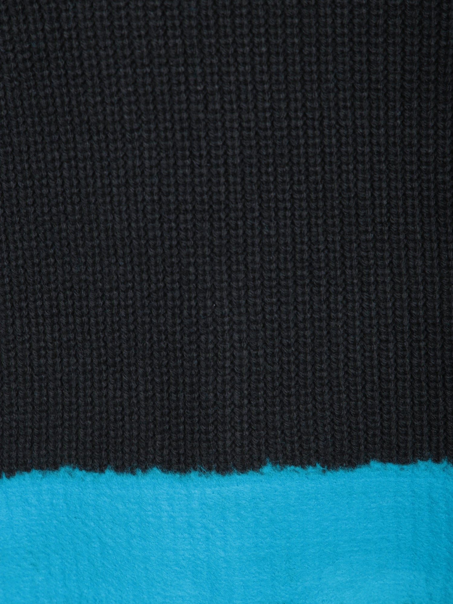 Long sleeve sweater in chunky knit. Bicolor design with a blue stripe.