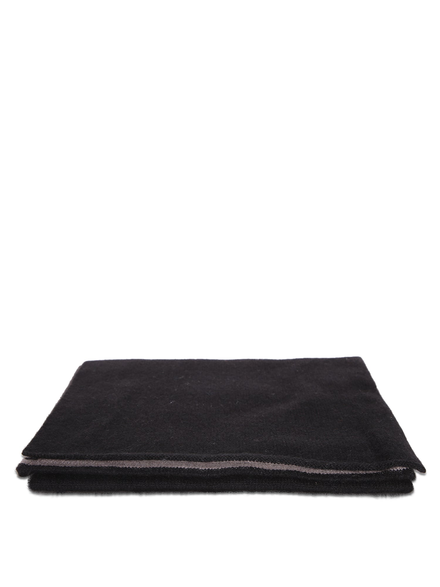Neck warmer crafted from soft cashmere. Features contrasting edge finishes. Timeless design.
