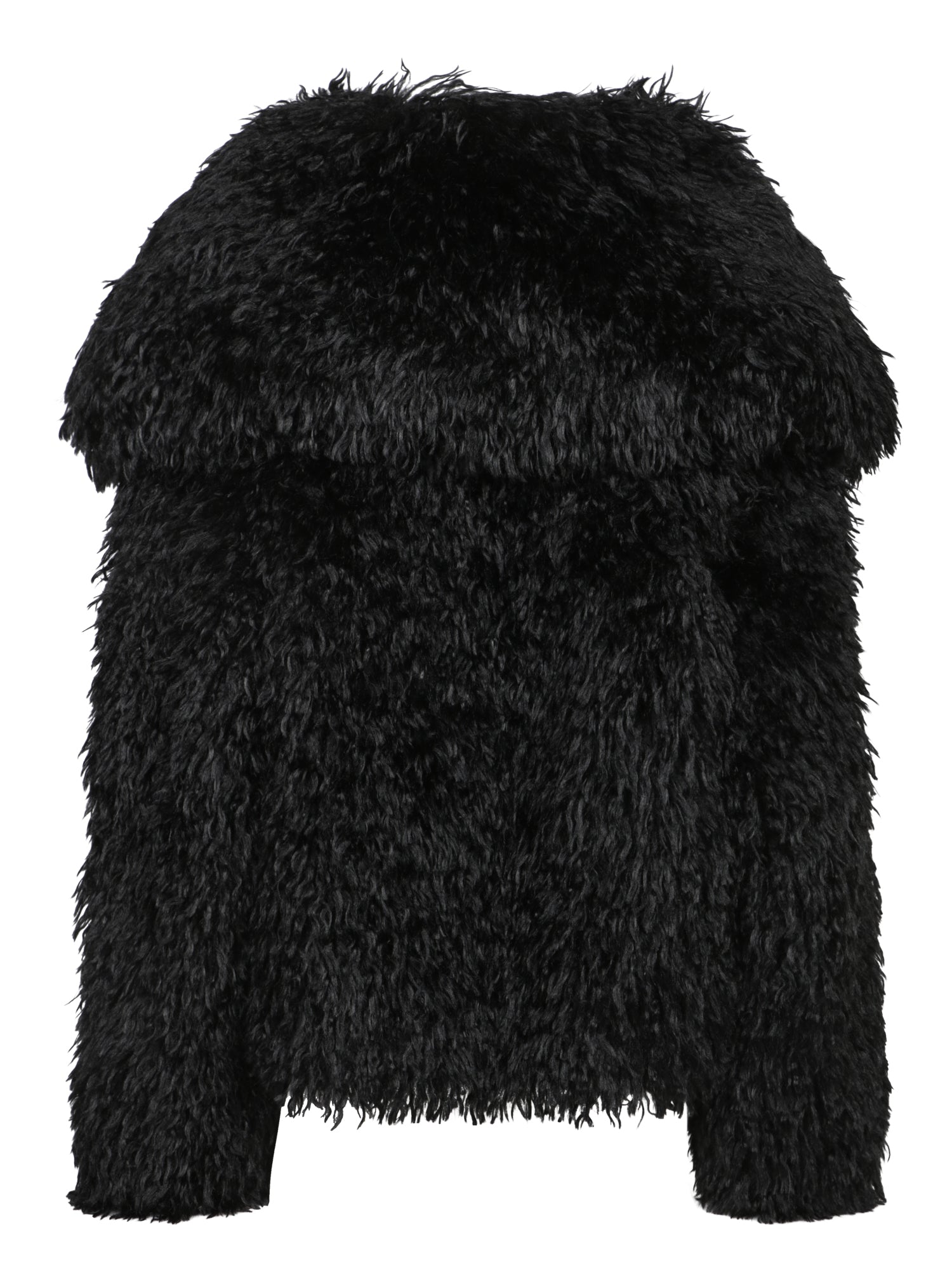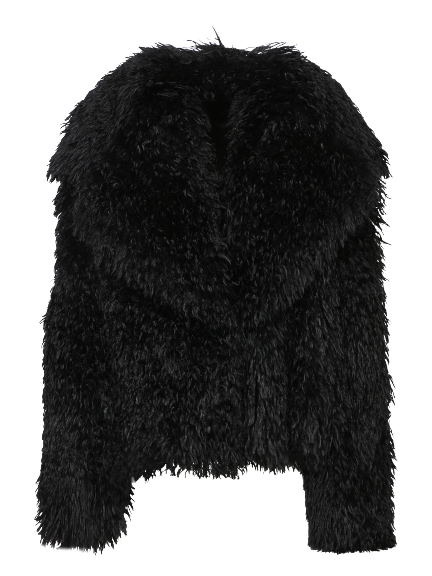 Cropped faux fur coat. Long sleeves and a boxy silhouette.