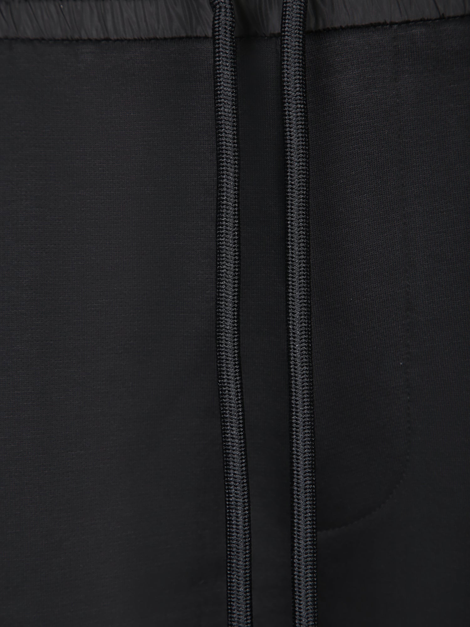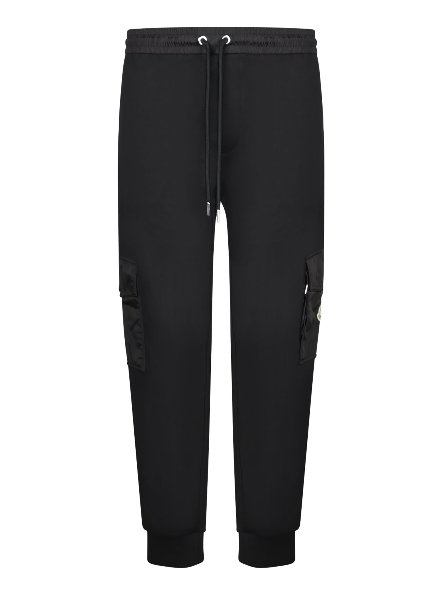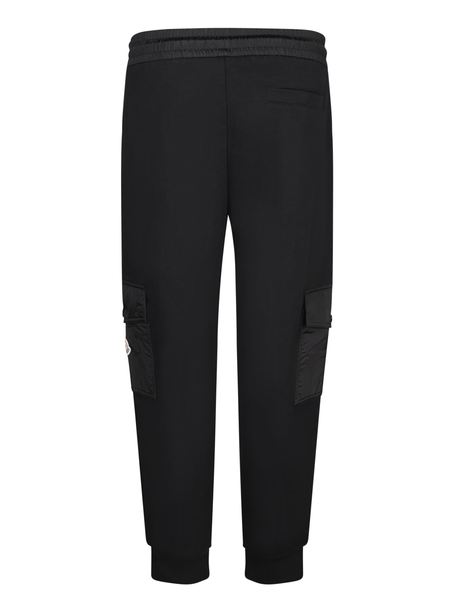 Adjustable drawstring, side cargo pockets, elastic cuffs.