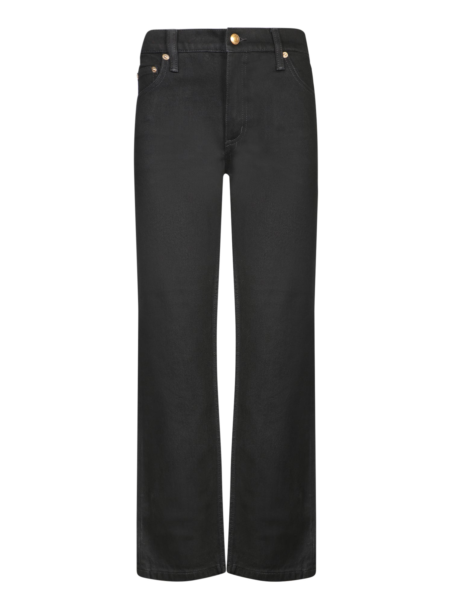 Elegant and versatile, these Tory Burch pants feature a flared cut that enhances the silhouette. The matte black finish and golden button details add a chic touch to any outfit.