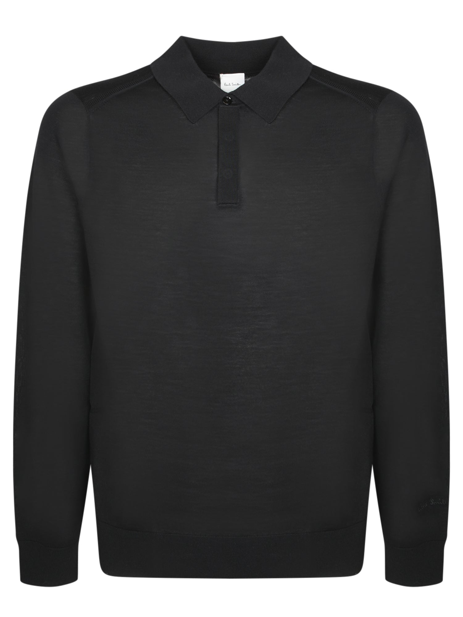 This elegant Paul Smith polo is crafted from fine black merino wool, providing a soft and comfortable fit. Its minimalist design is enhanced by a subtle logo on the right cuff.