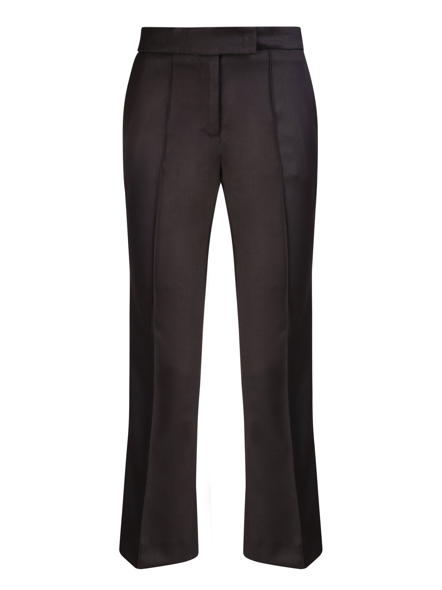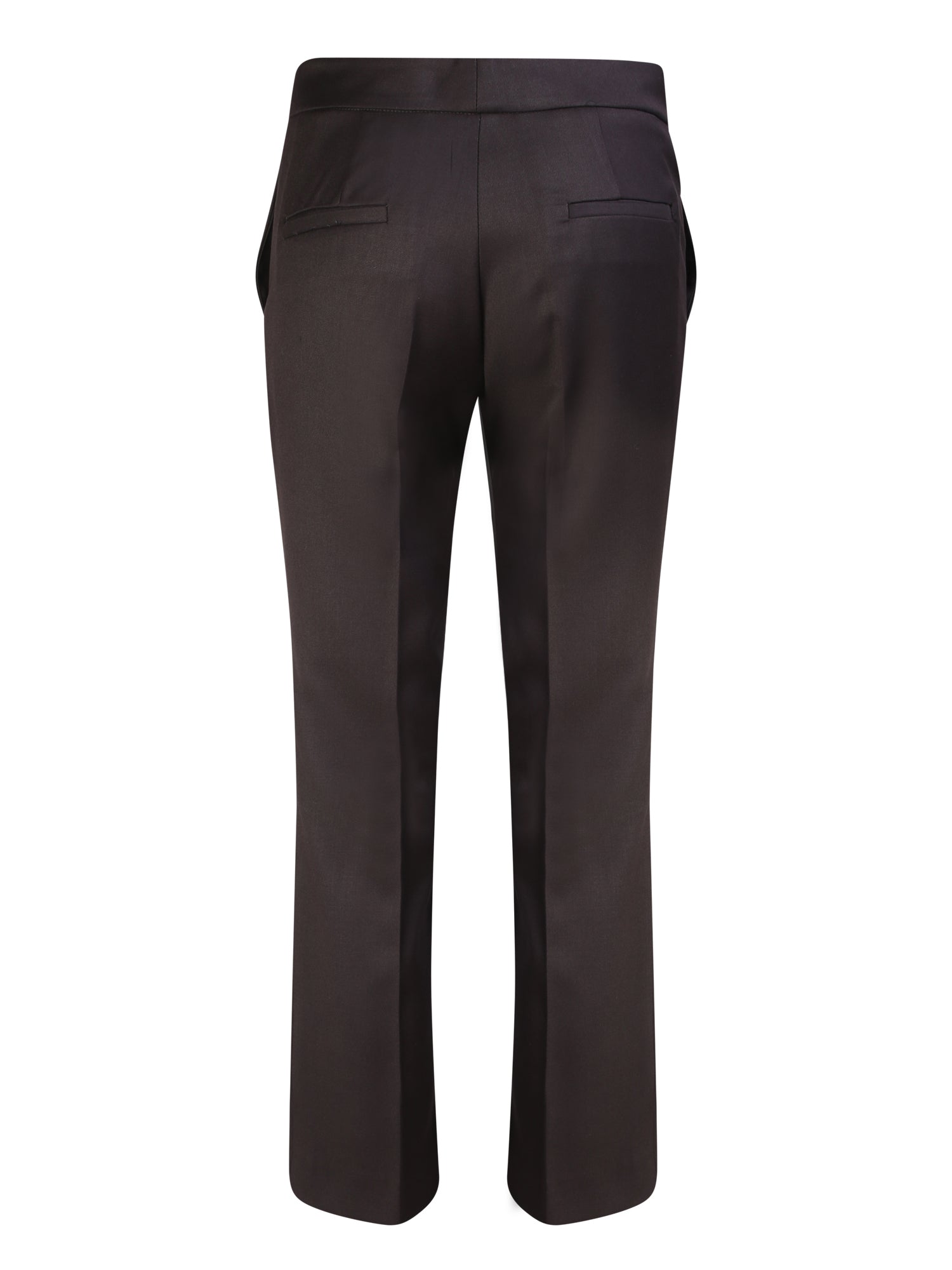 Mid-rise. Concelead front fastening. Two front welt pockets. Two rear welt pockets. Flared cut. Cropped. Color: black