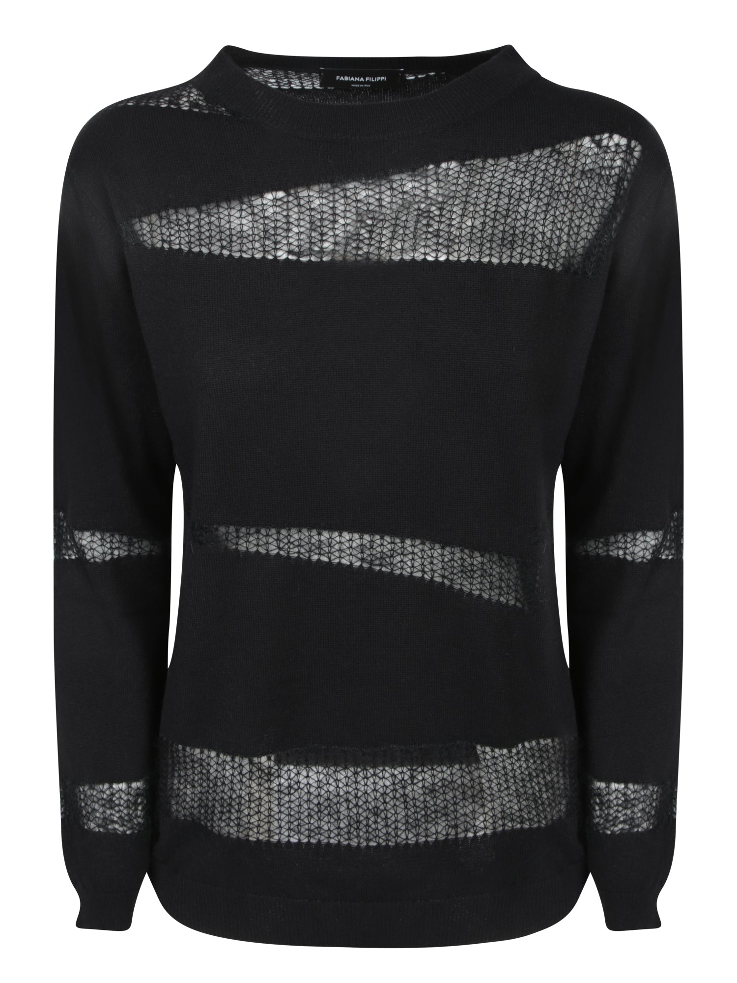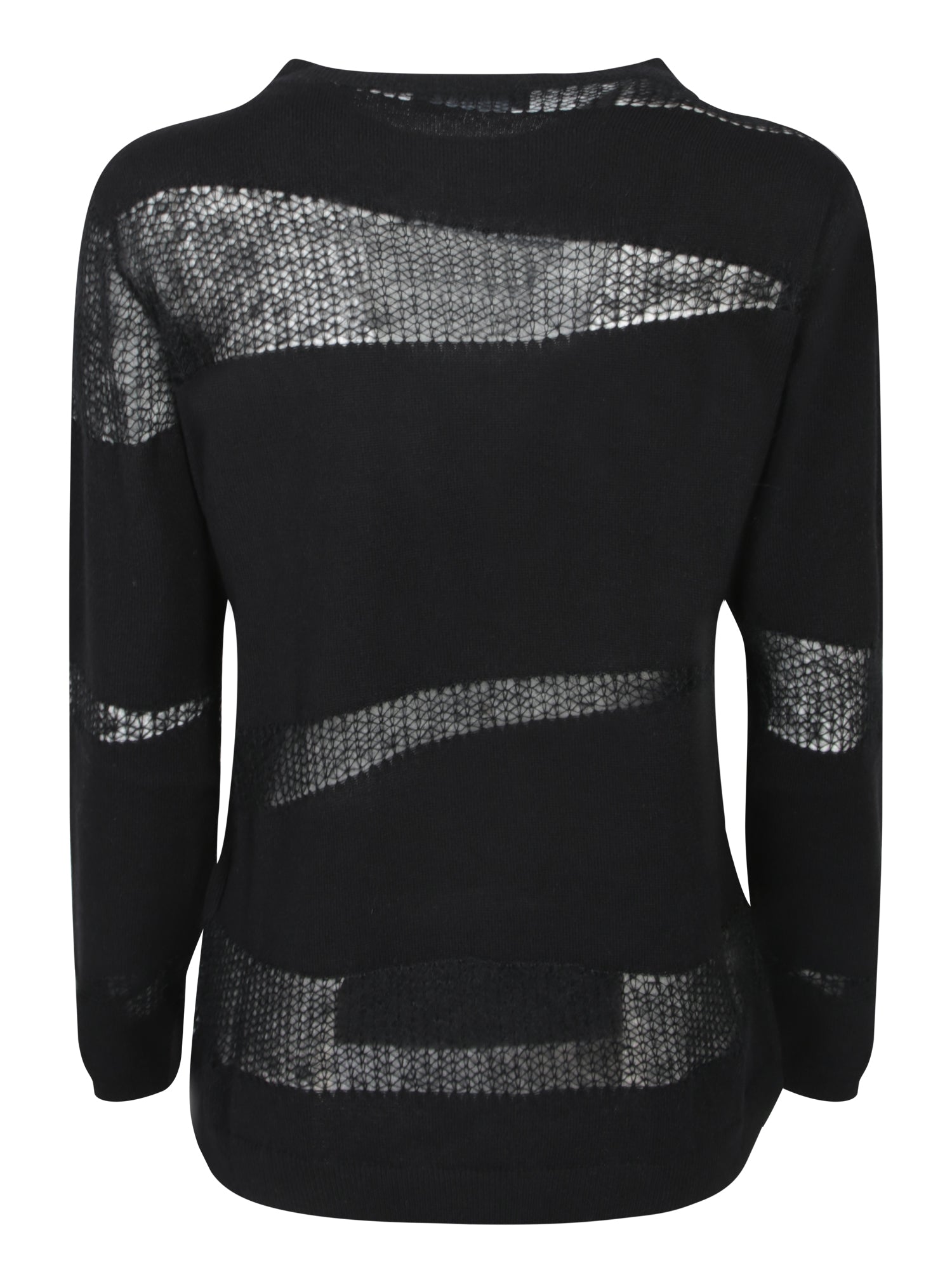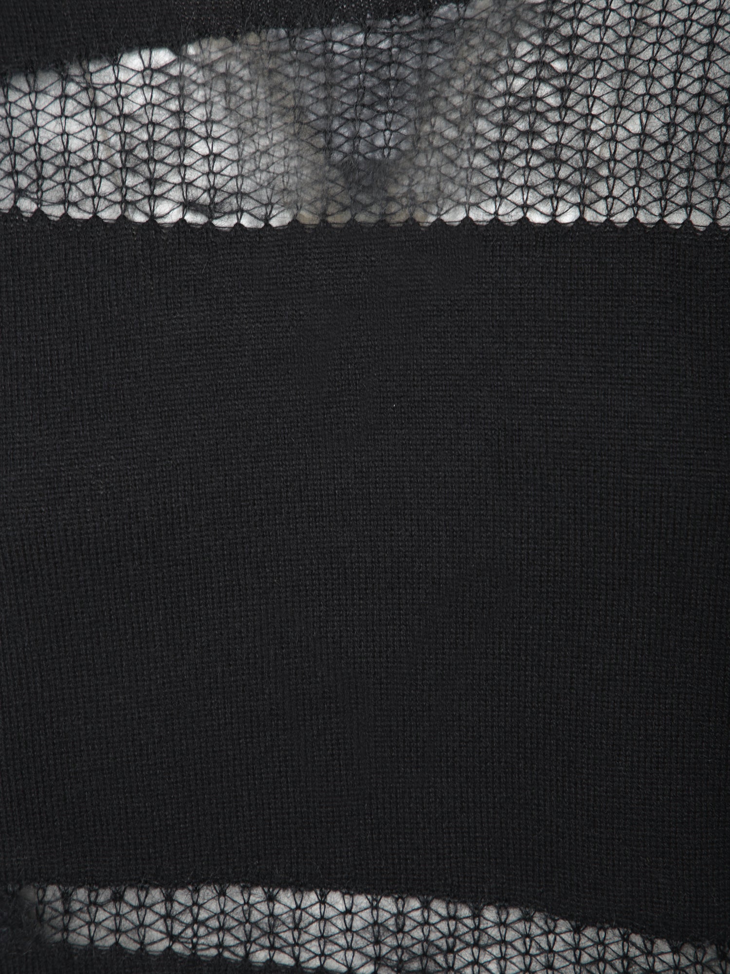 Long sleeve sweater. Sheer details on chest and arms. Crew neck.