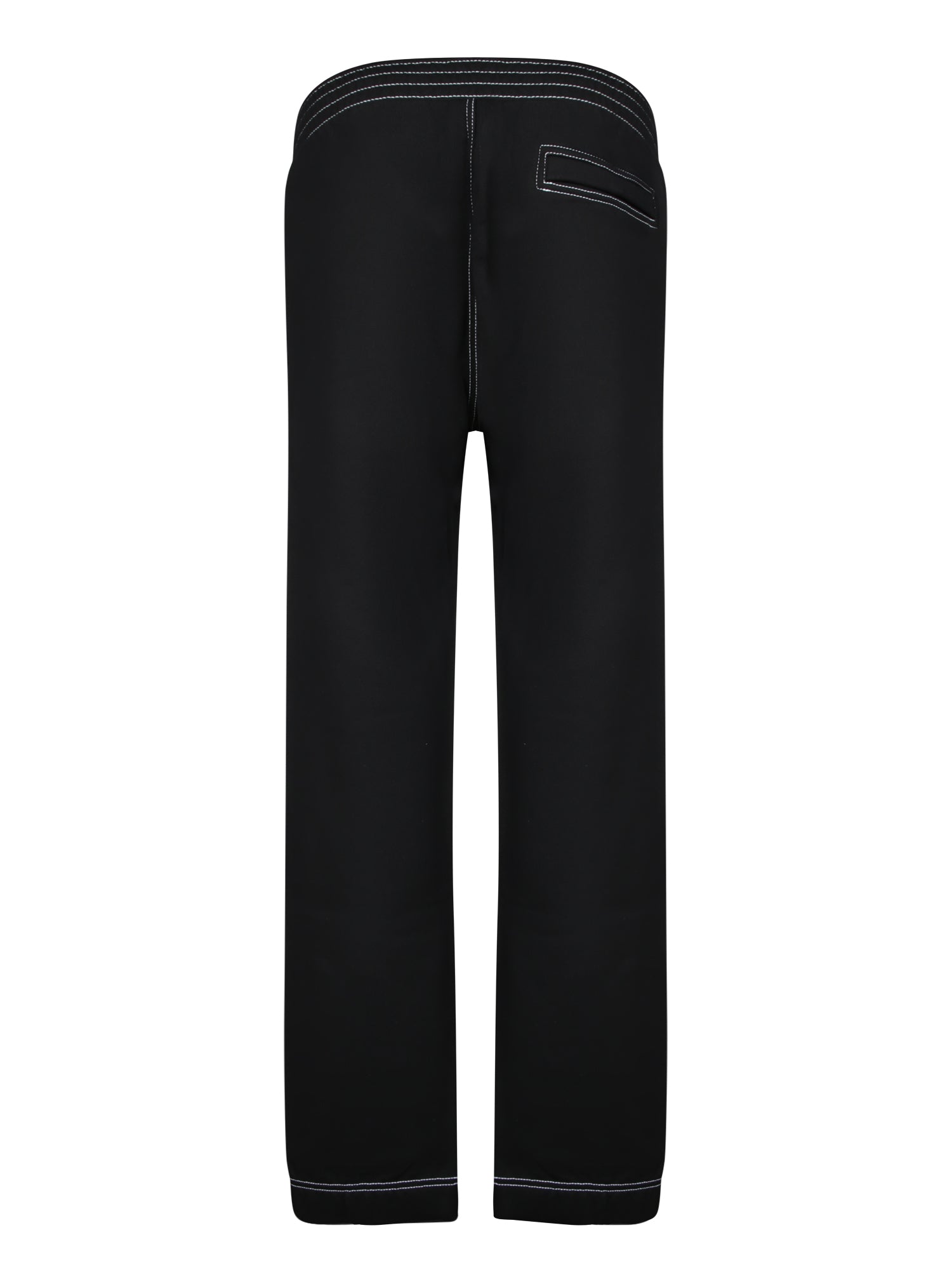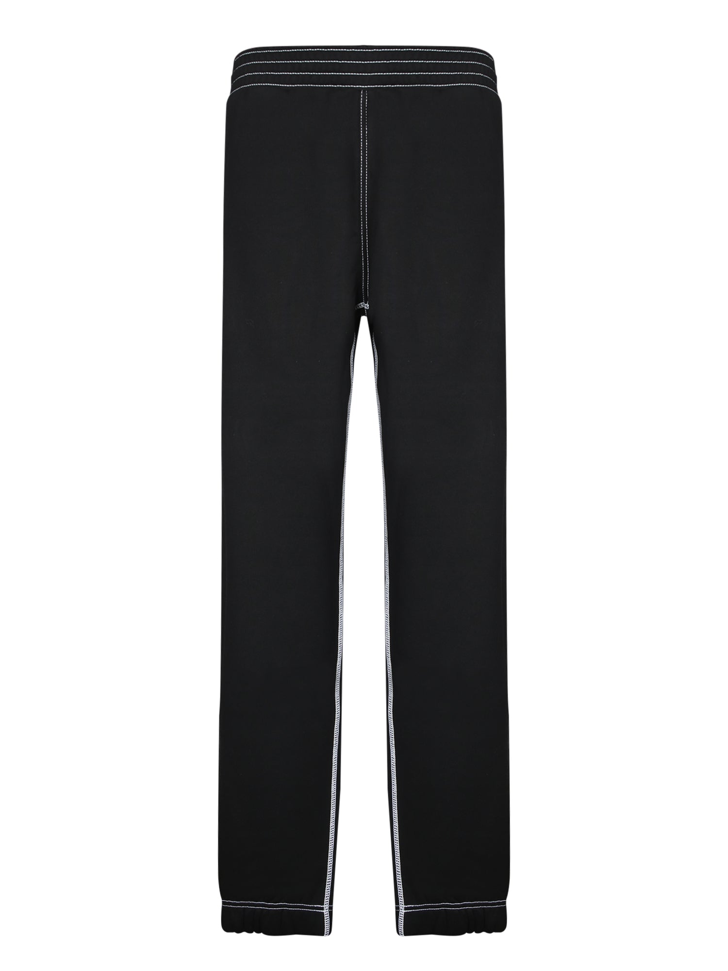 Black sweatpants with contrast detailing. Elastic waistband with drawstrings. Ribbed cuffs.