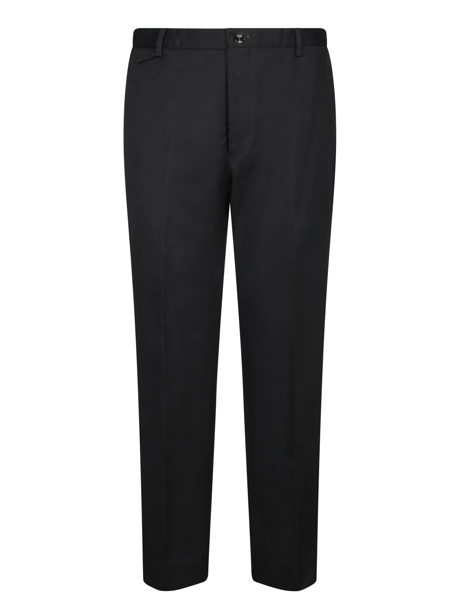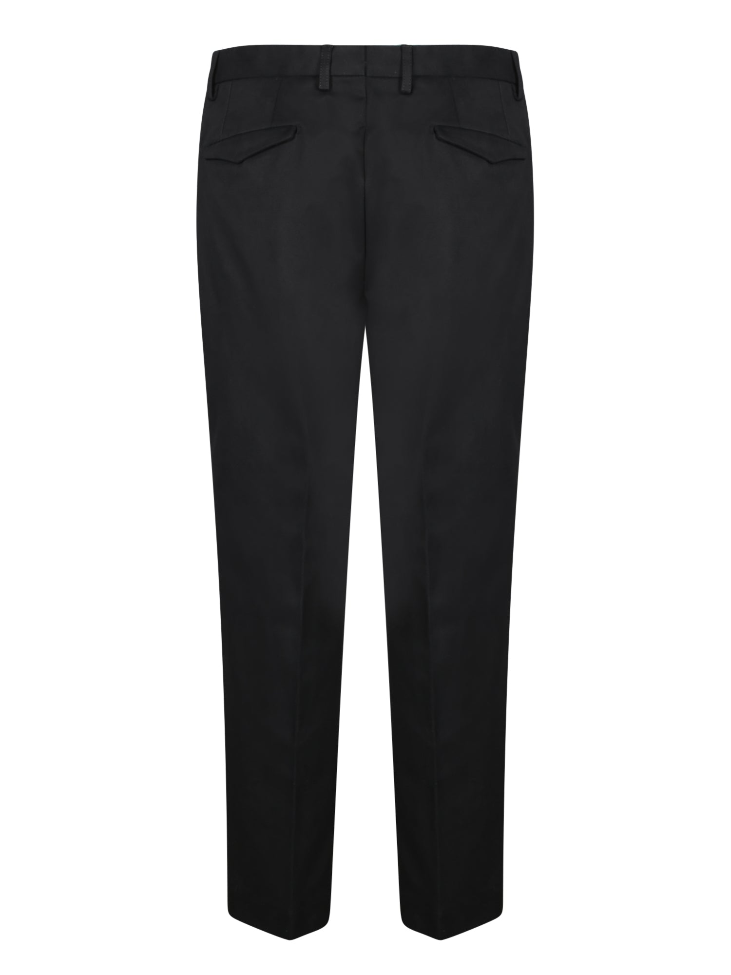 Wide-cut pants in black drill. Front zip and button closure. Side and back pockets.