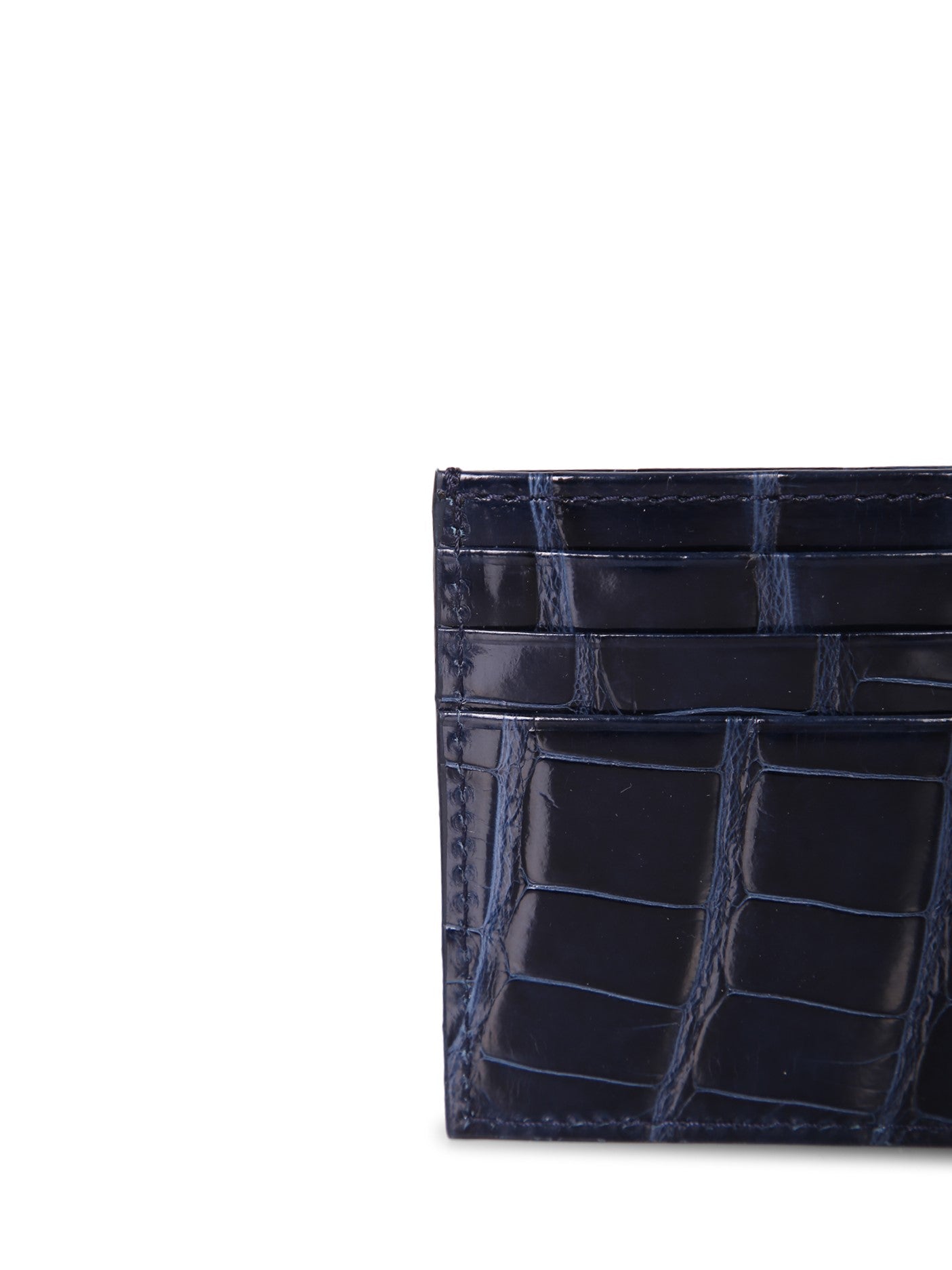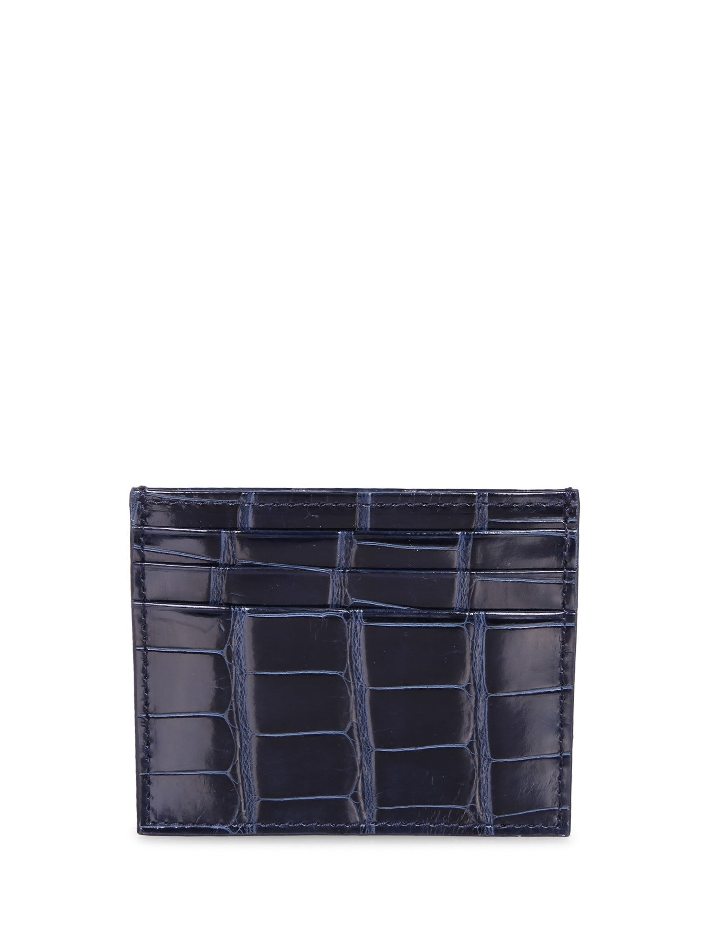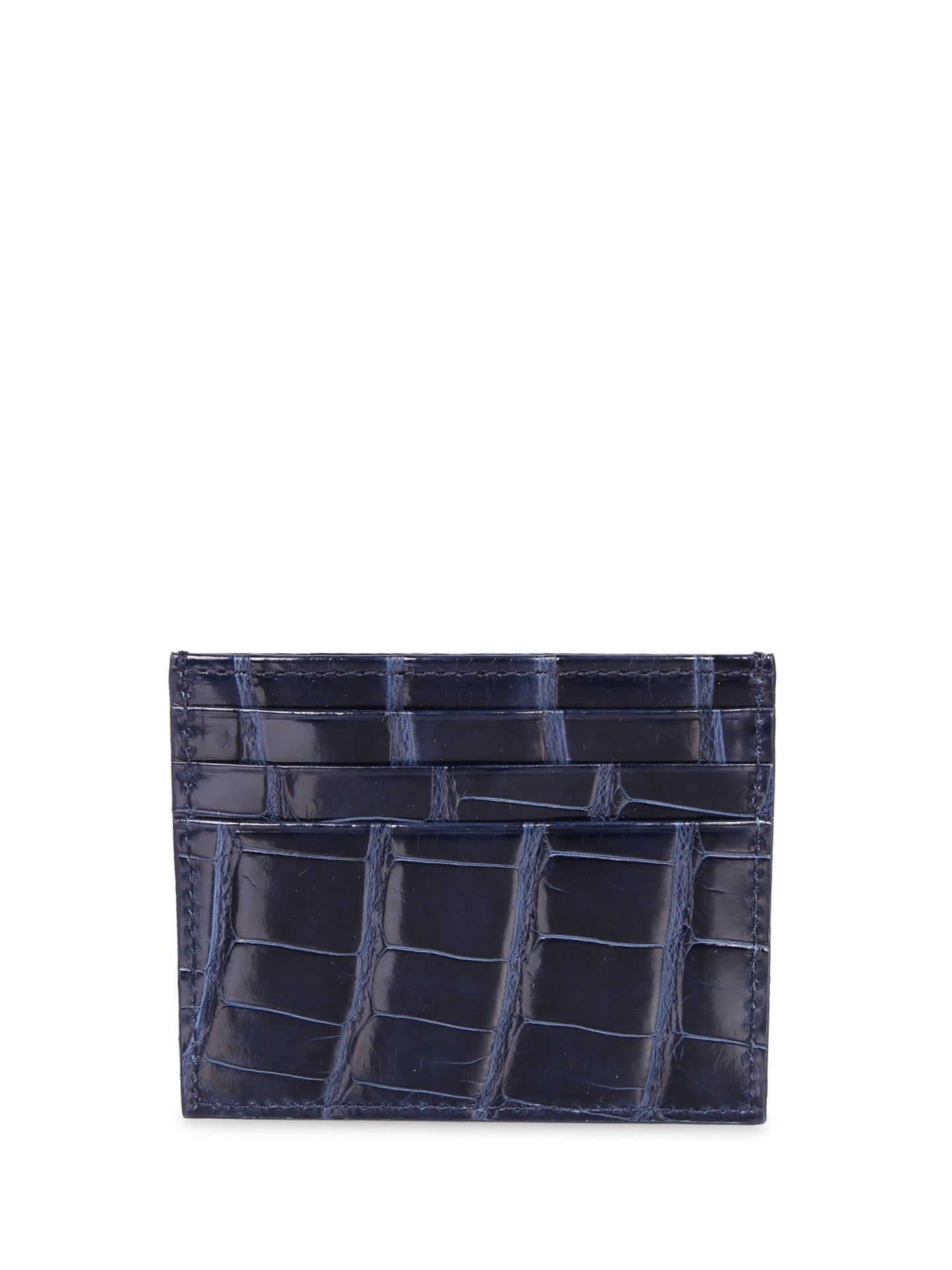 Genuine alligator leather card holder. Compact design with six internal compartments. Premium finishes.