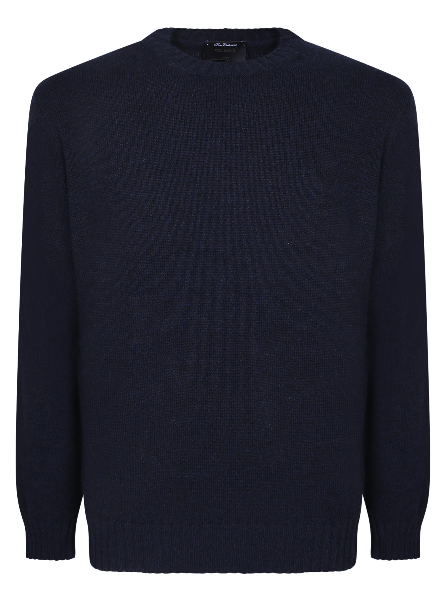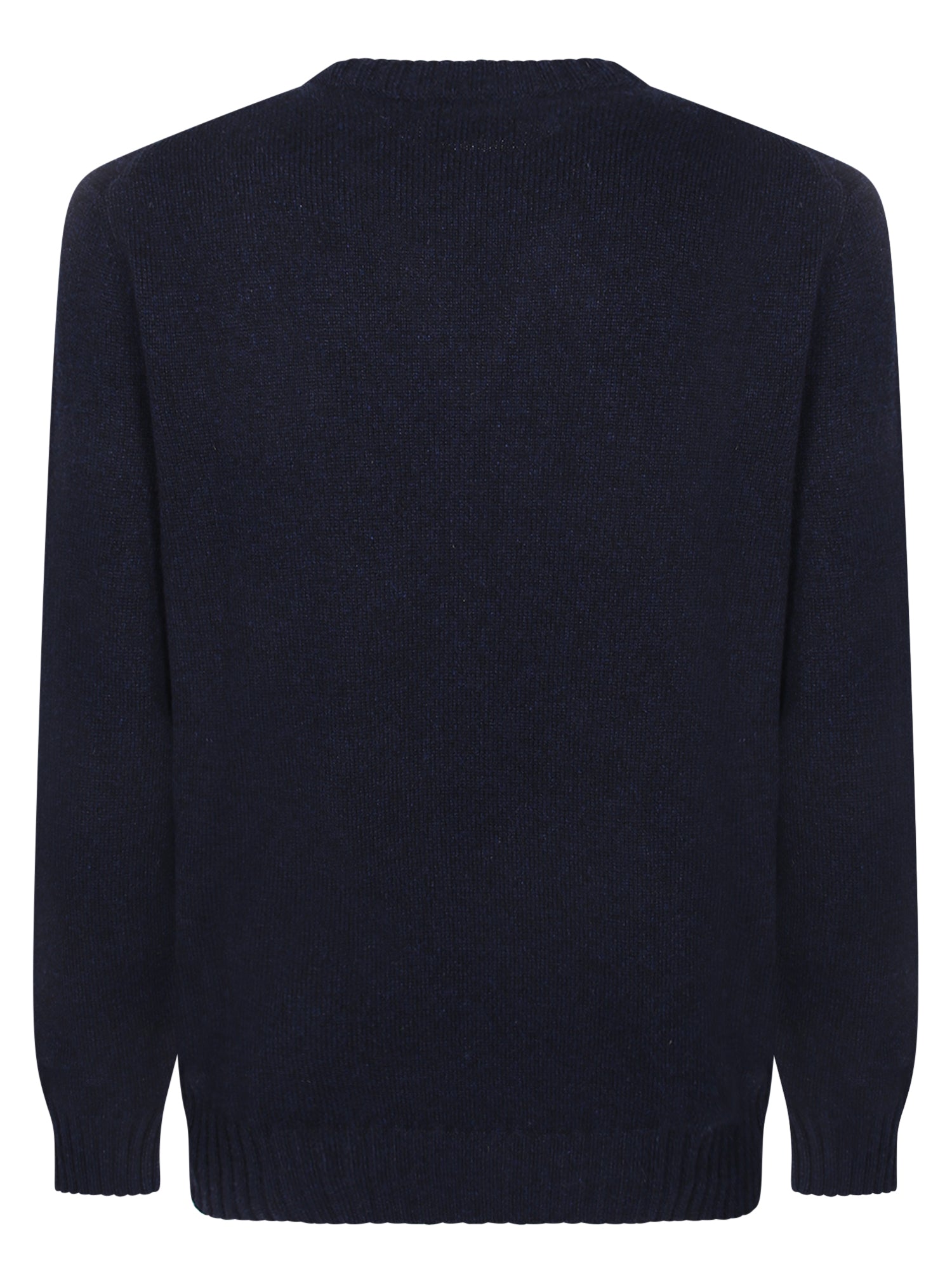Crew neck cashmere knit. Ribbed finishes on collar, cuffs, and hem.