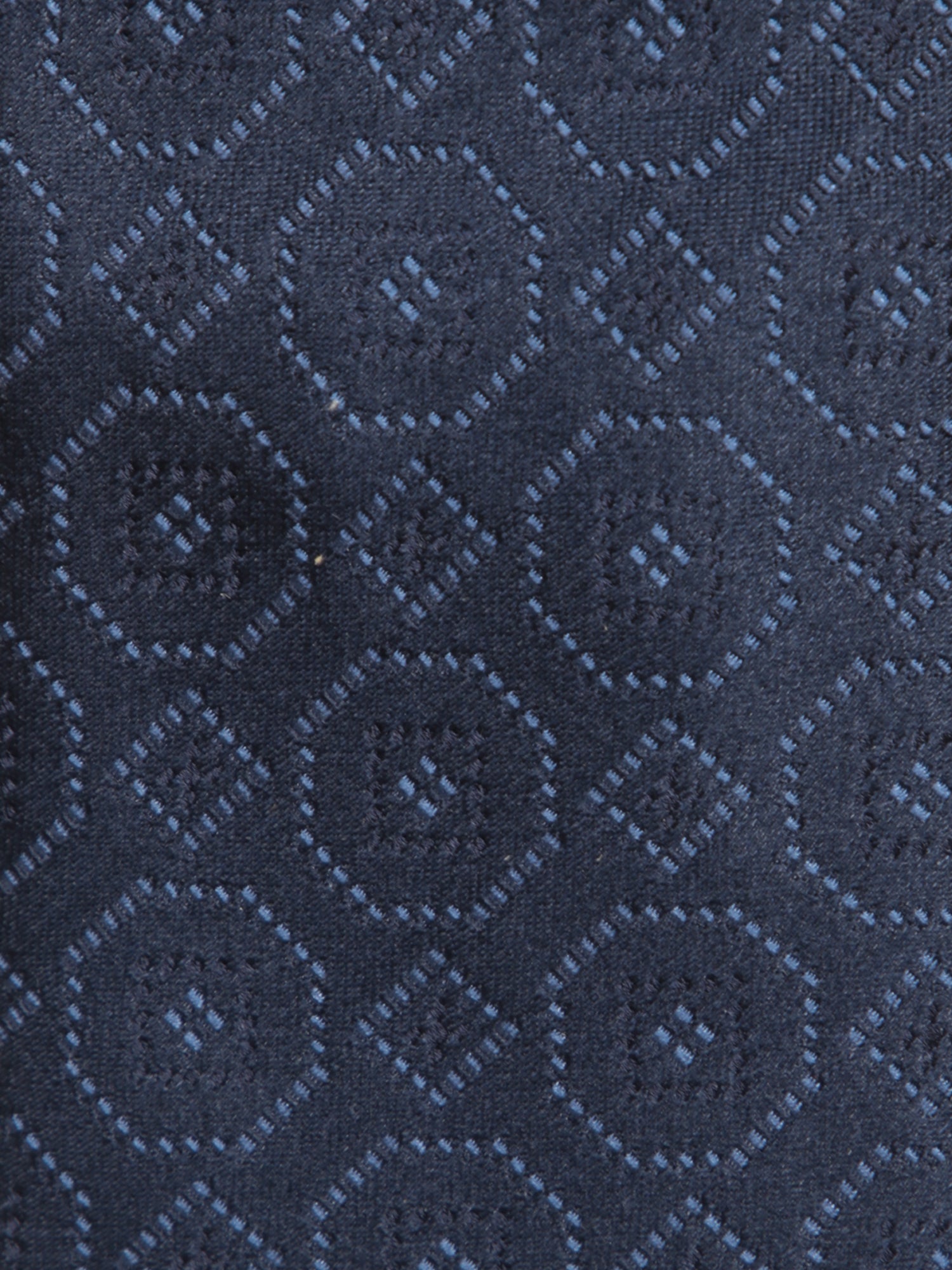 This elegant Brunello Cucinelli tie in shades of blue is finished with a bold geometric pattern that adds a distinctive touch to classic formal attire.