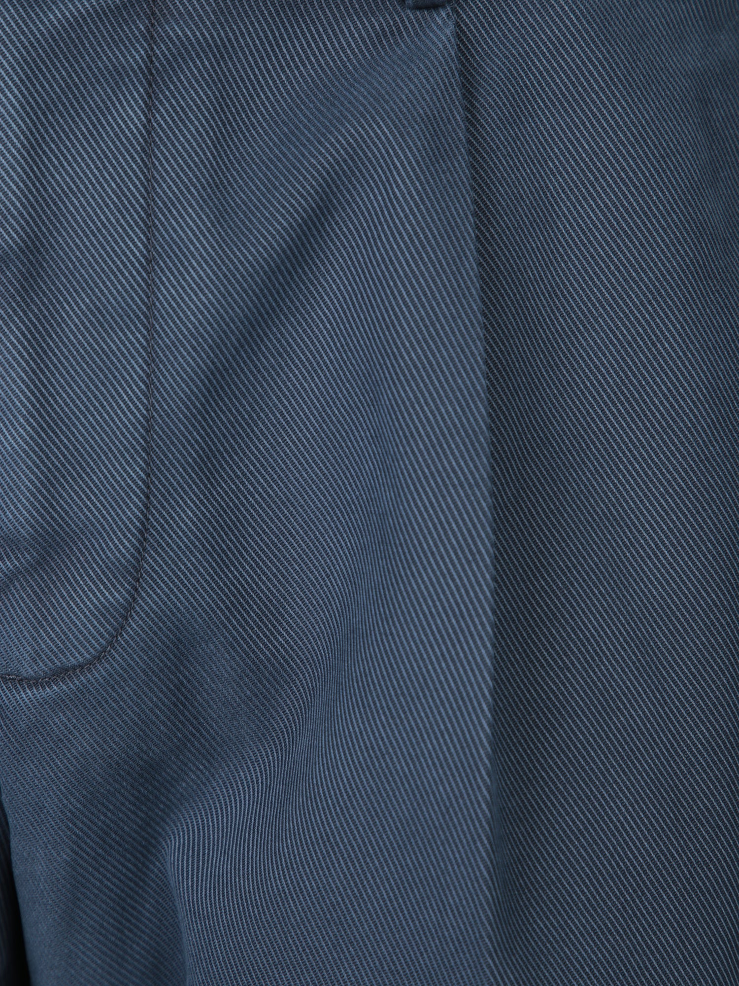 Blue stretch fabric trousers. Straight cut with a slim fit. Front closure with zipper and button.