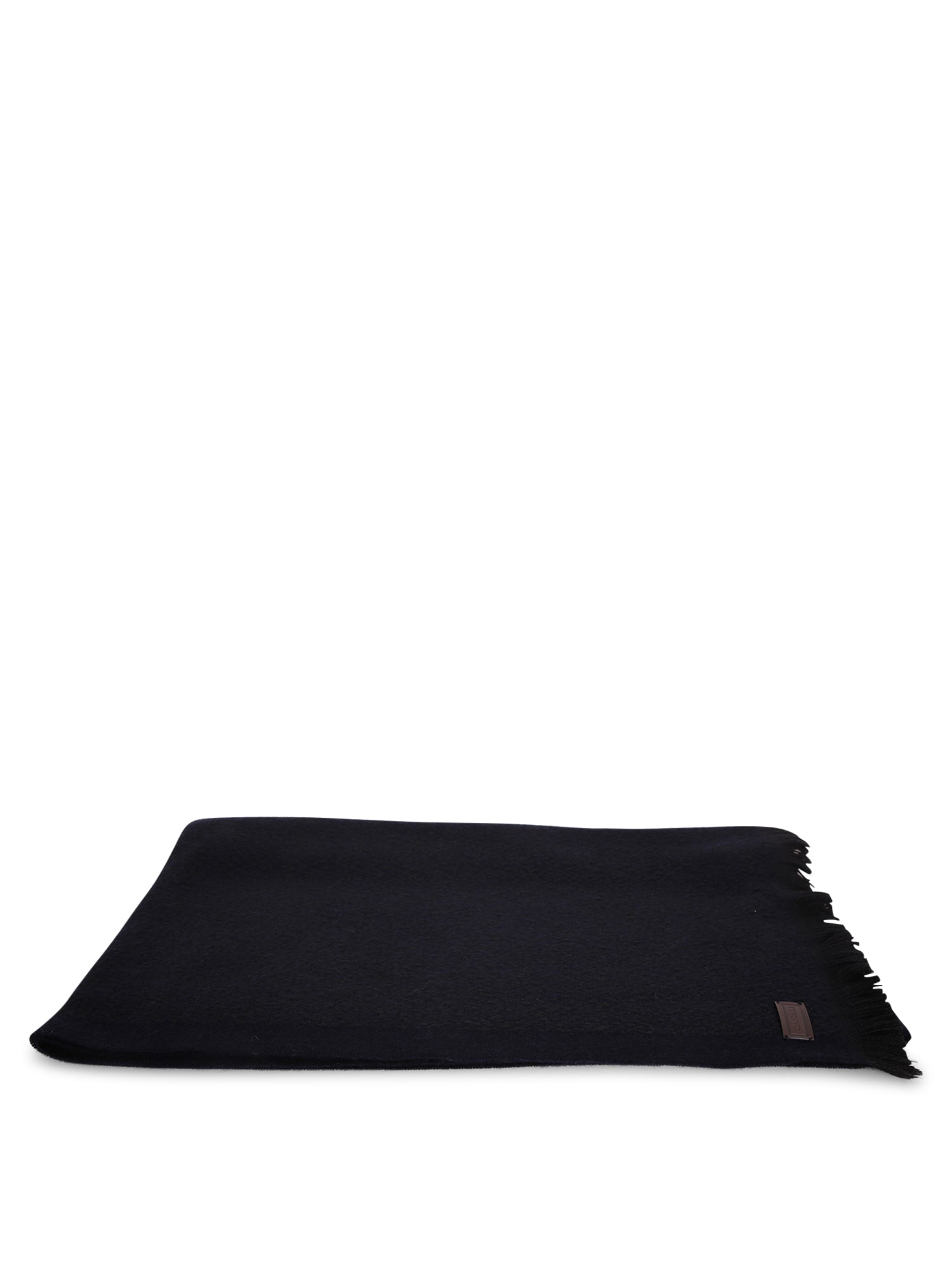 Pure wool scarf in deep blue color, with fringed edges.