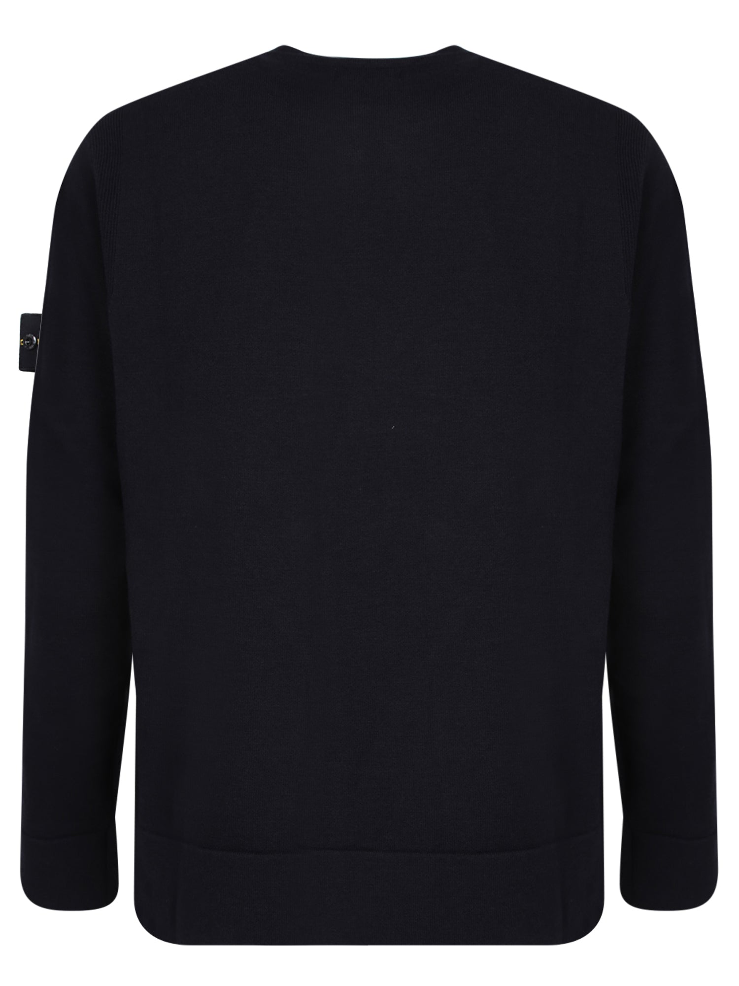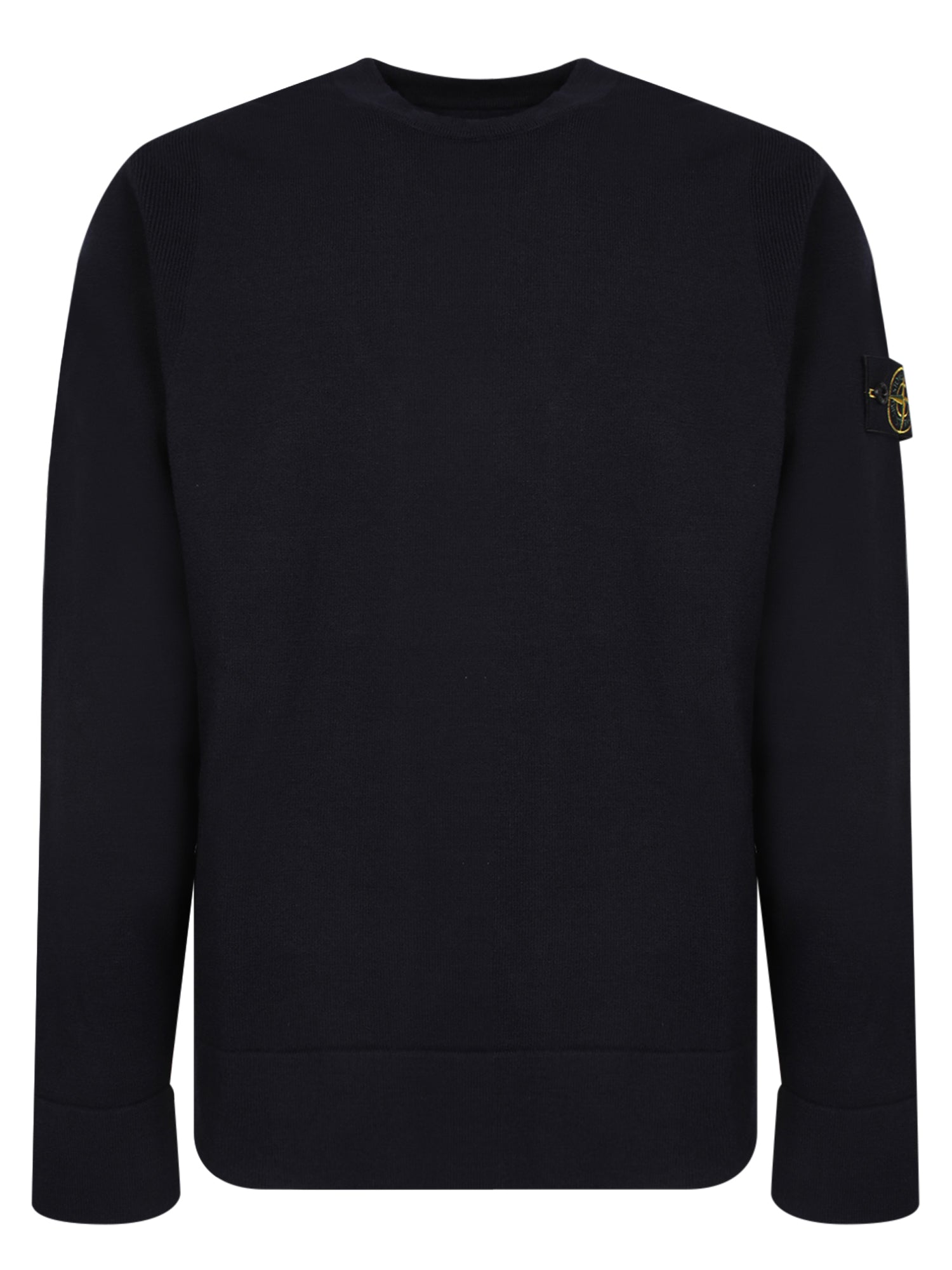 Long-sleeve, crewneck wool sweater. Distinctive Stone Island logo patch on the arm.