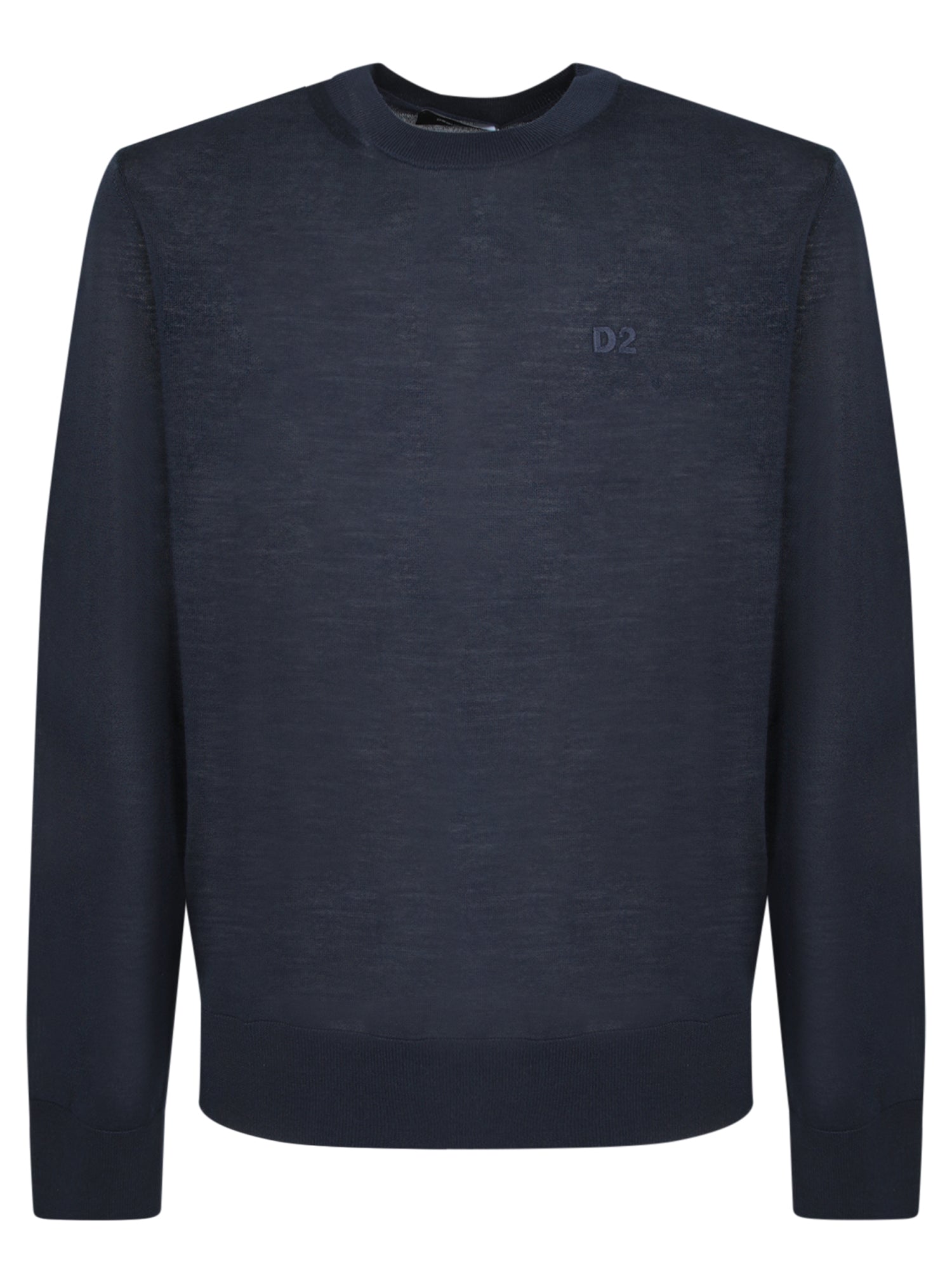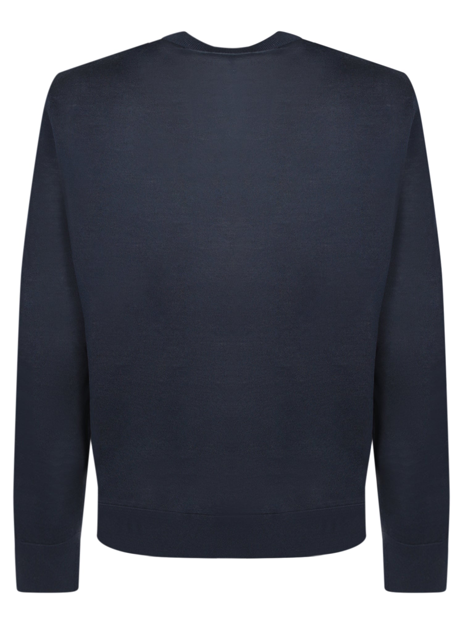 Long sleeve wool sweater. Round neckline. Discreet logo on the front.