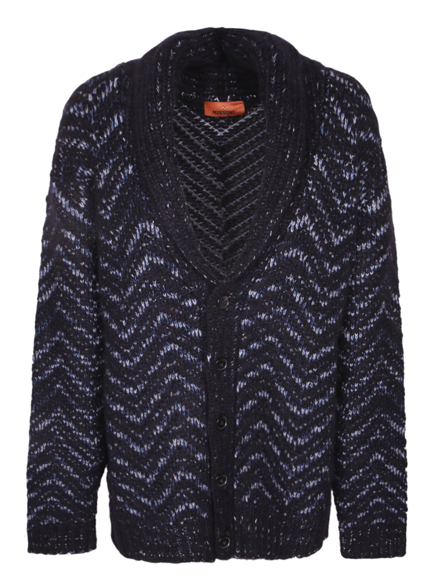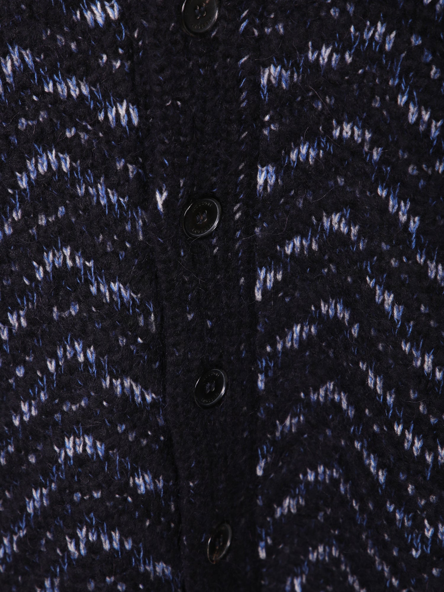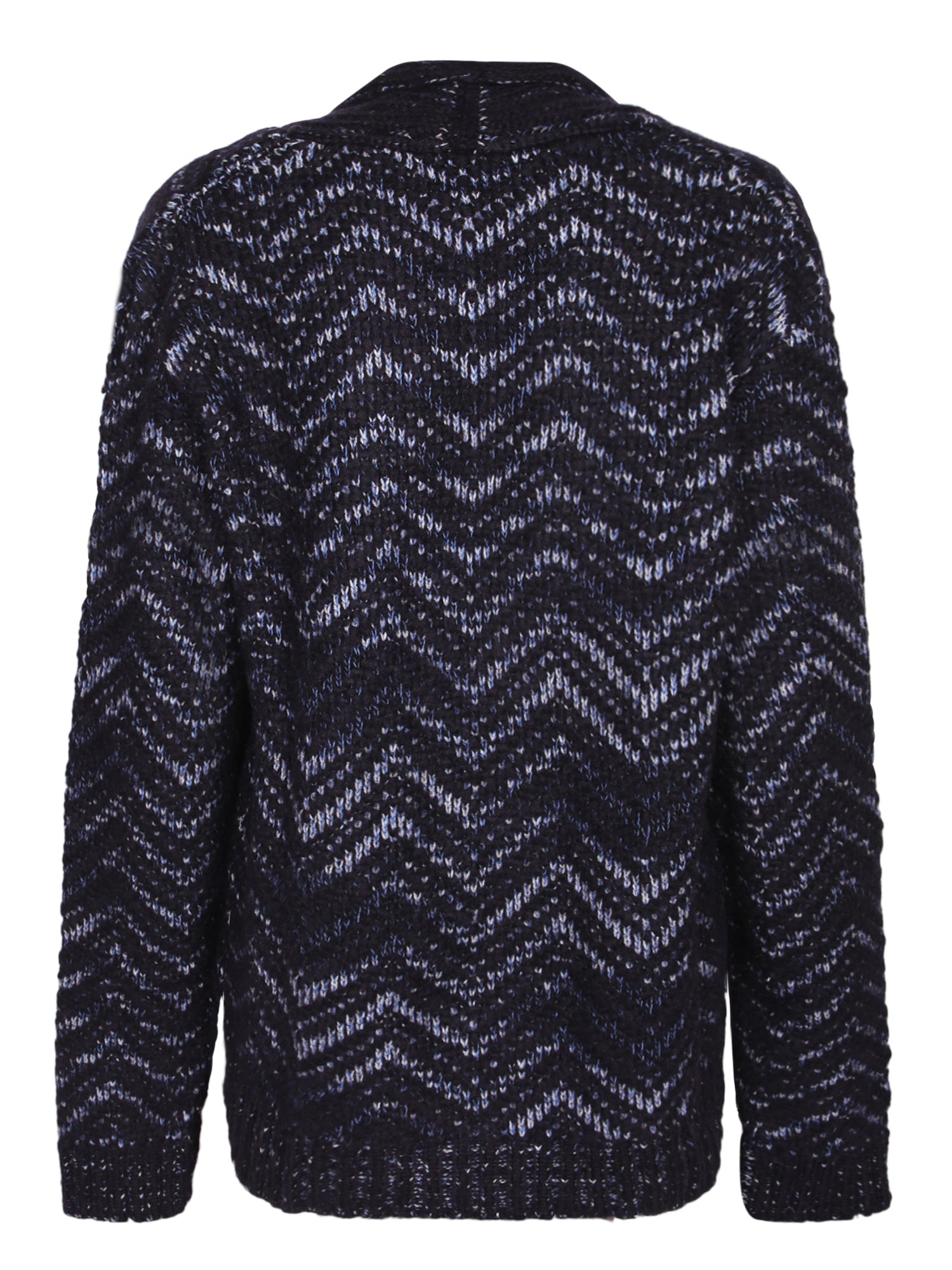 Cardigan with shawl collar. Zigzag knit fabric. Button front closure.