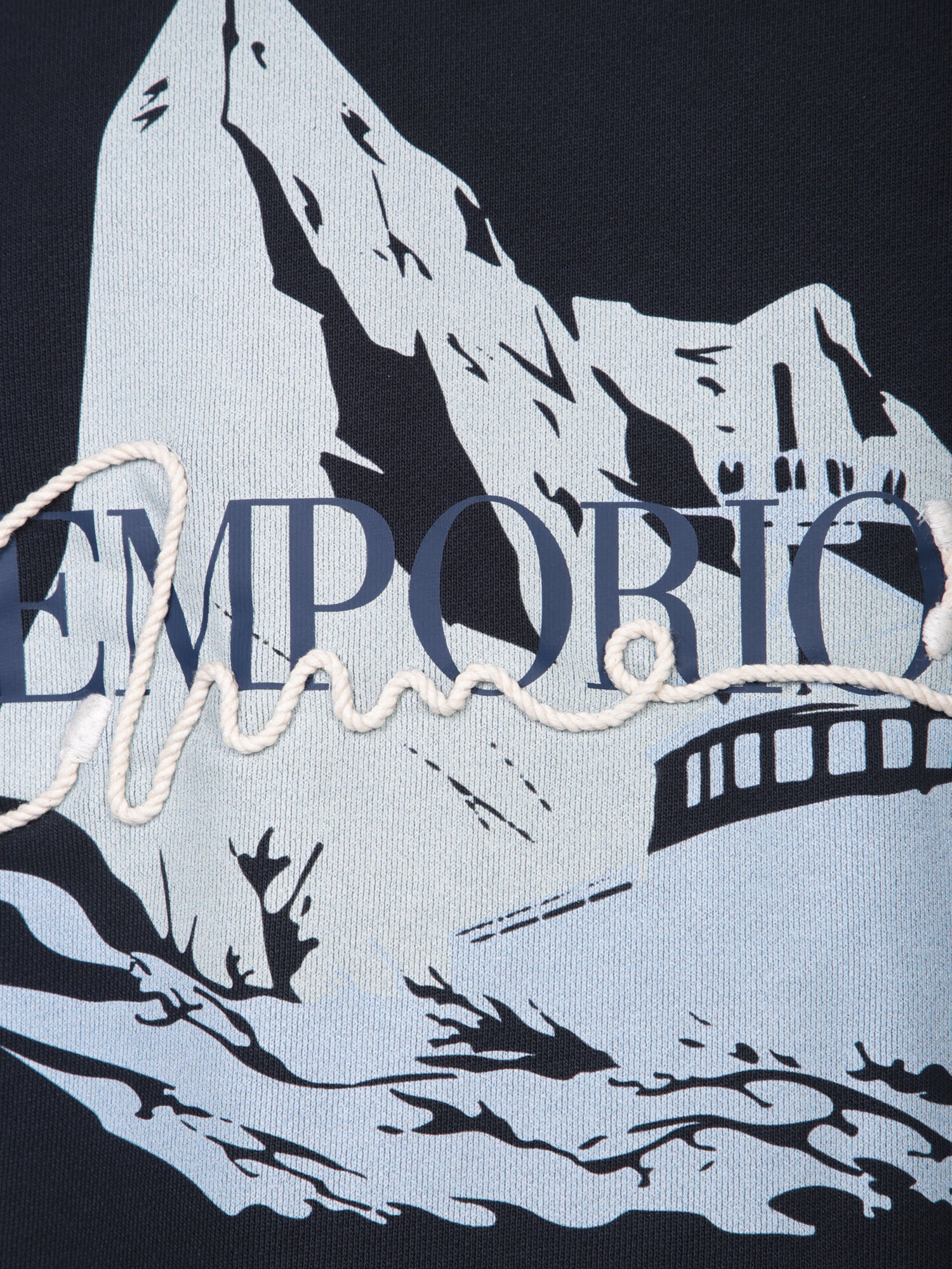 This sleek EMPORIO ARMANI T-shirt features a bold nautical-themed design with stylized logo, perfect for a standout everyday look.