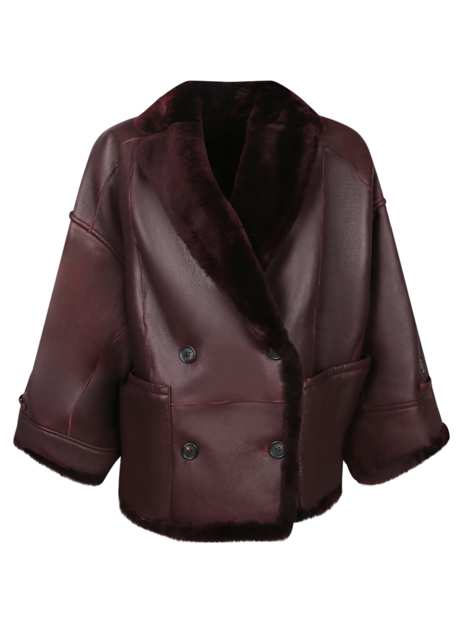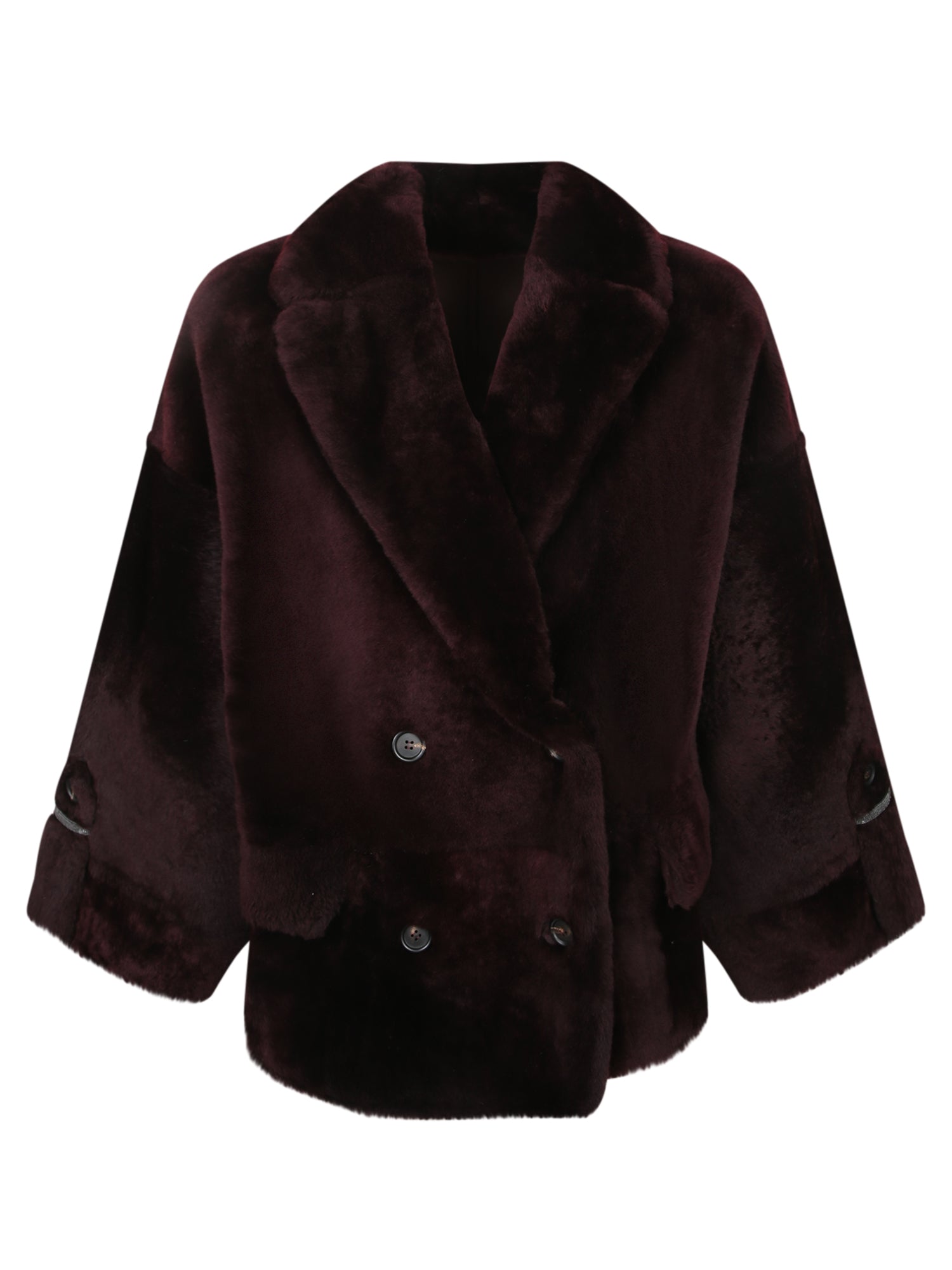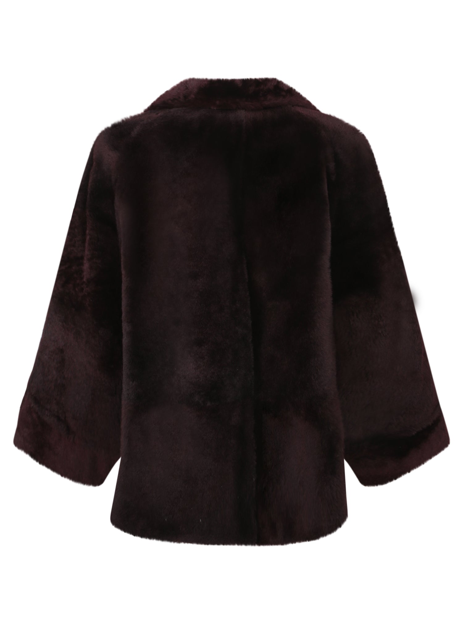 Oversized faux fur coat. Shawl collar, three-quarter sleeves with cuff. Double-breasted closure.